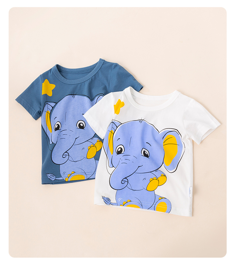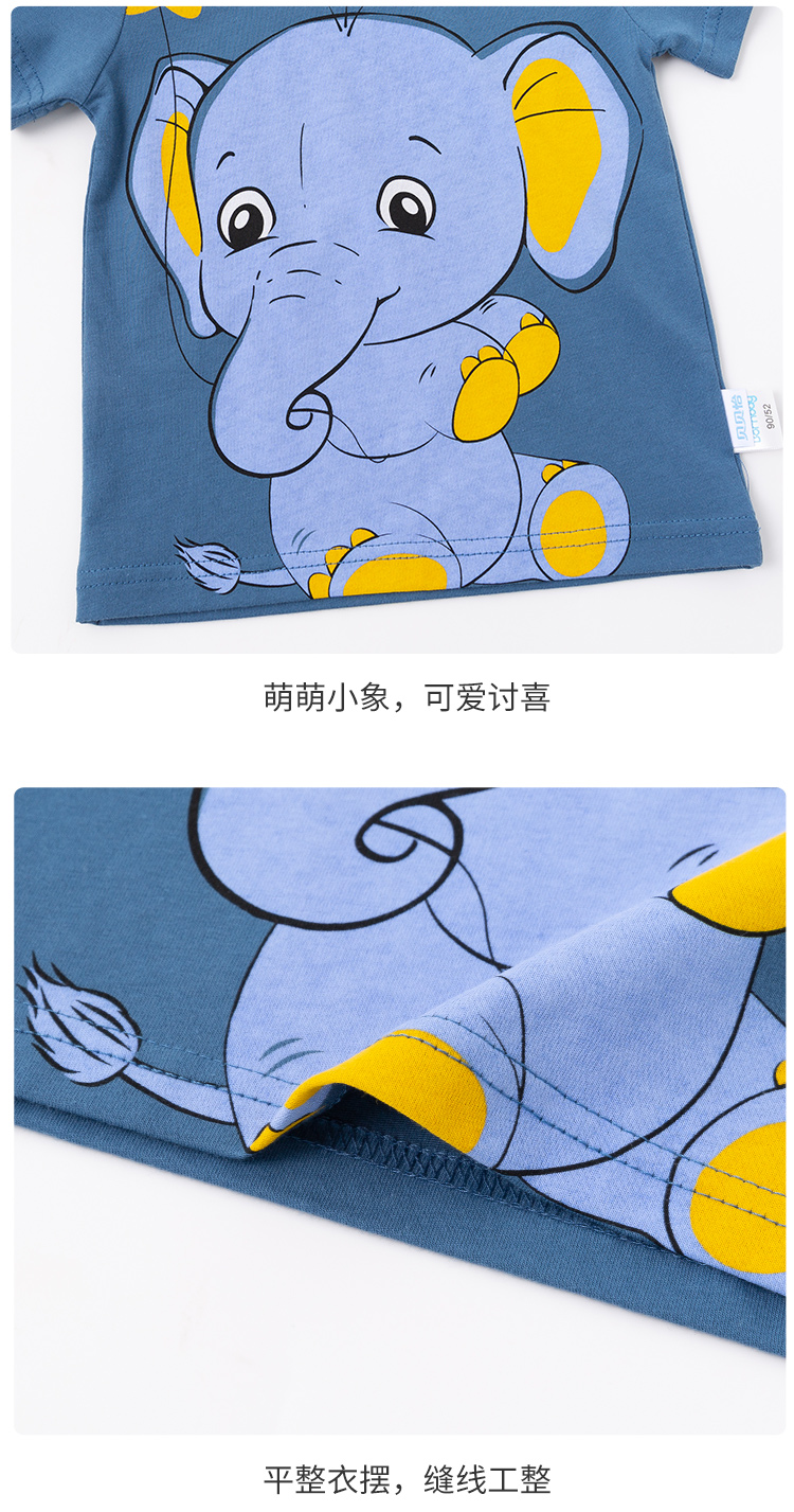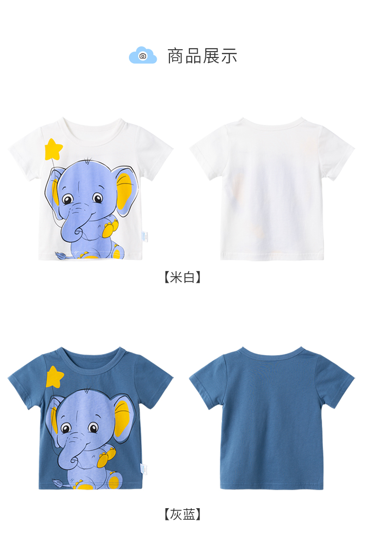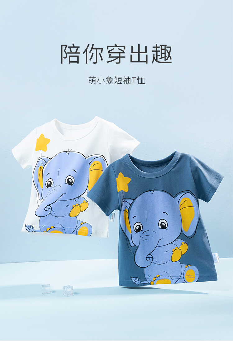 贝贝怡童装夏季儿童半袖卡通大象图案男童短袖宝宝T恤纯棉上衣潮