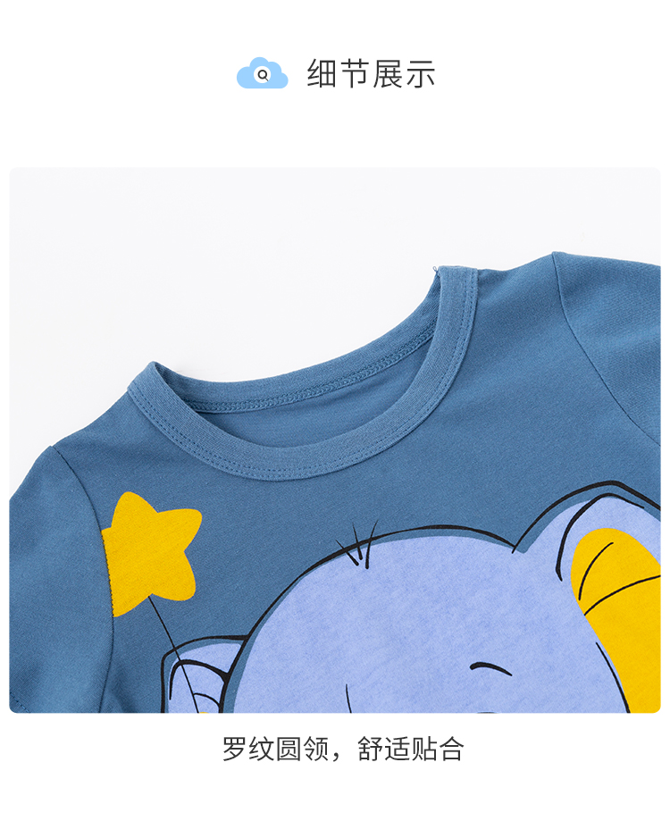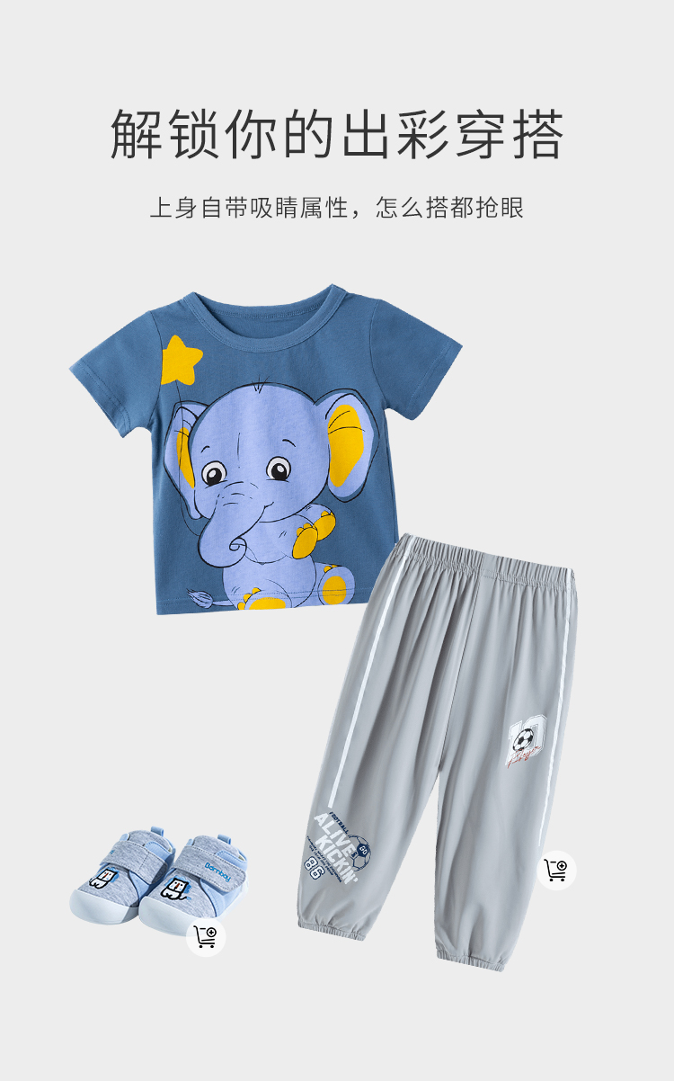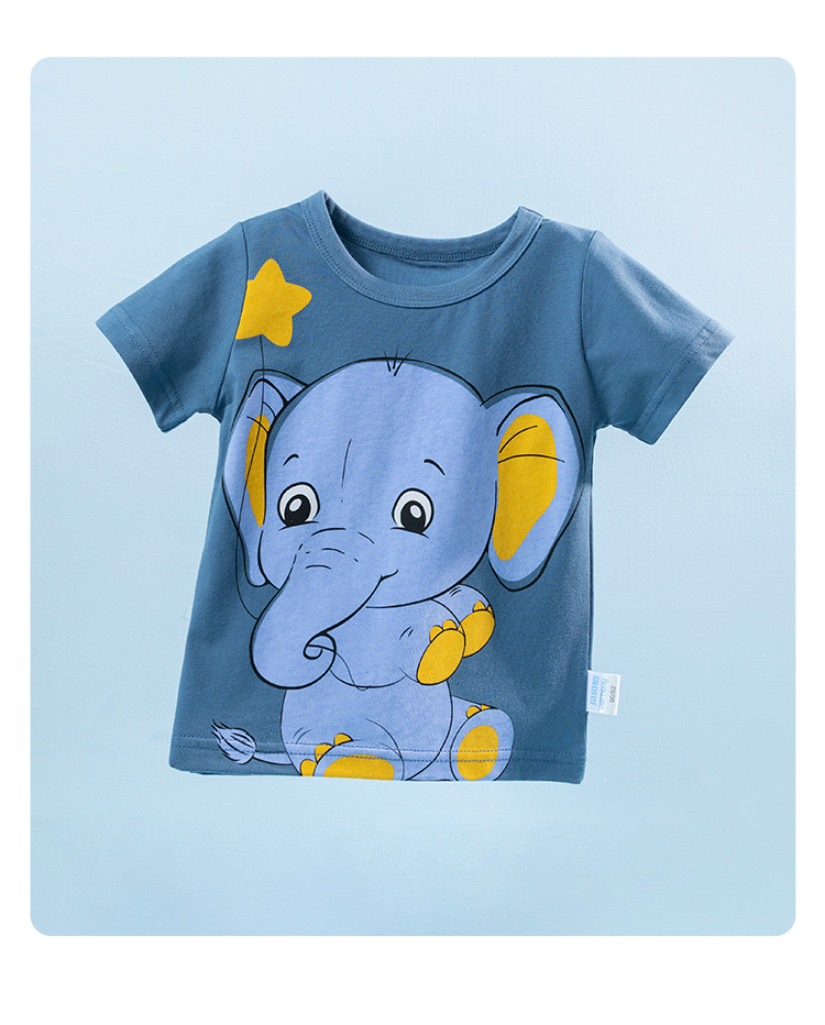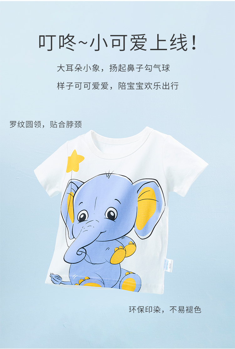 贝贝怡童装夏季儿童半袖卡通大象图案男童短袖宝宝T恤纯棉上衣潮