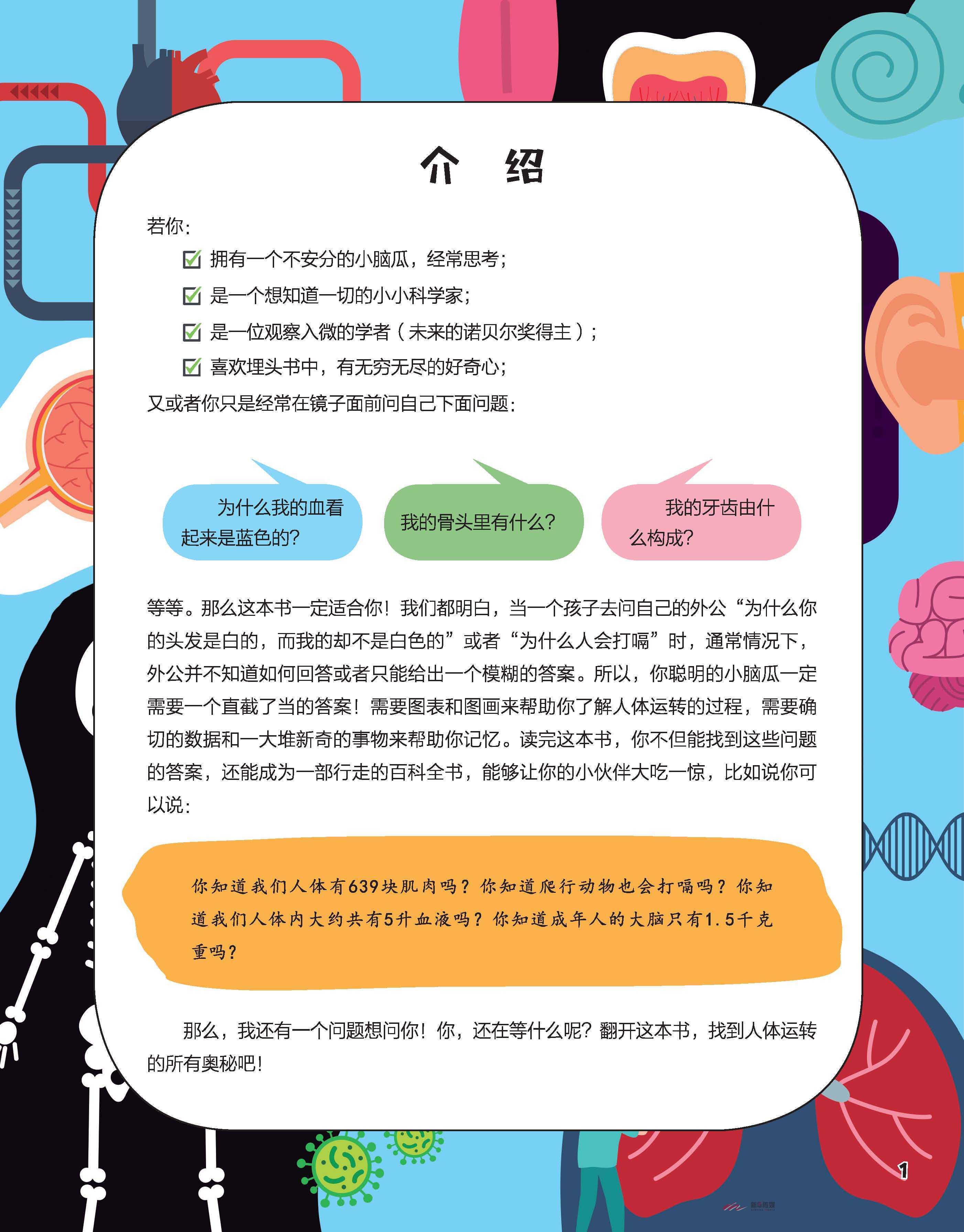 编辑推荐: 满足孩子的好奇心、求知欲和探索欲 启迪孩子的科学思维和逻辑思维 通过绘制的大量精美、科学、准确的插画,立体呈现科普知识点,增加了科普内容的趣味性。 本书可以让儿童对自我身体的好奇心得到释放,从而激发他们对人体科学的探索兴趣。