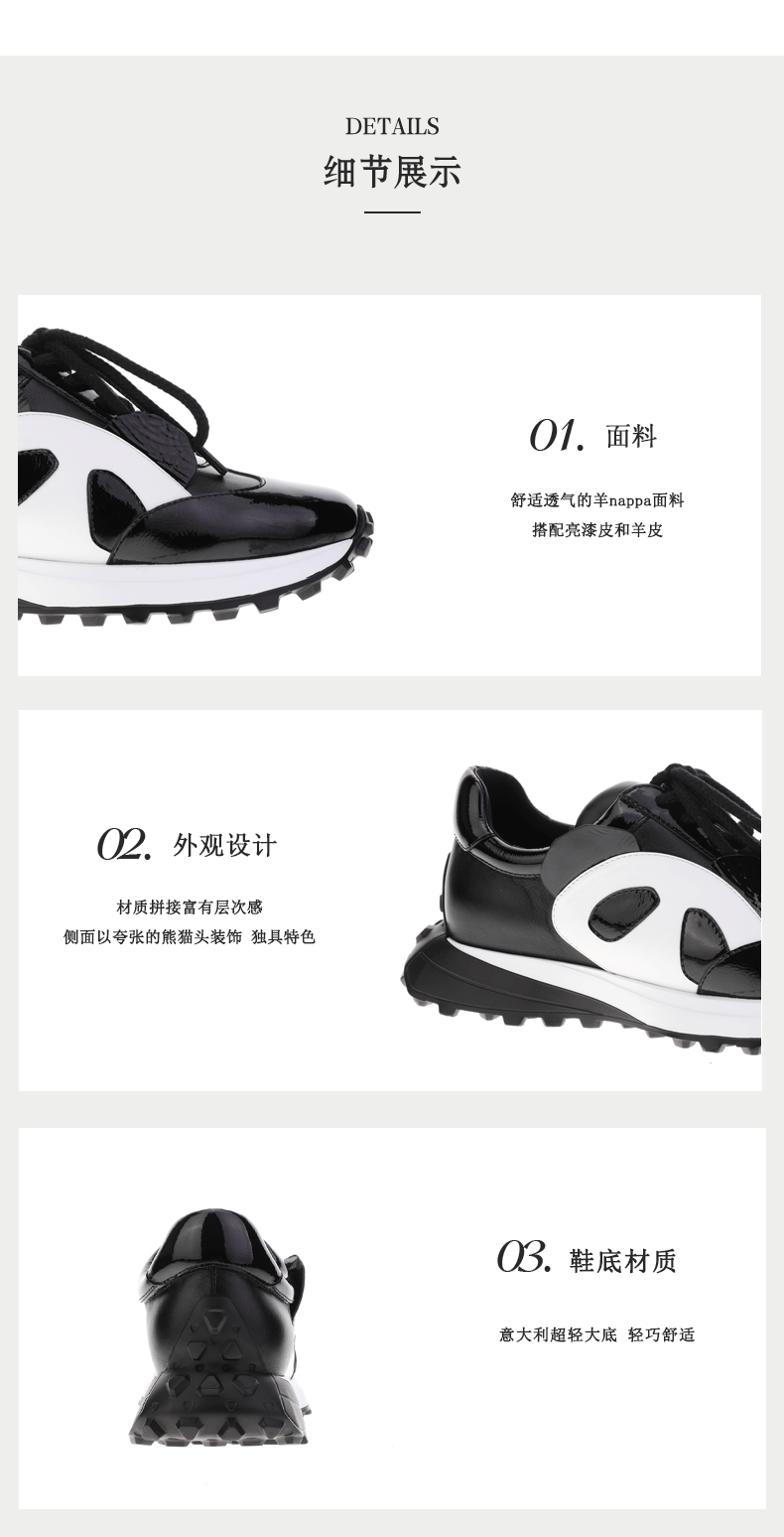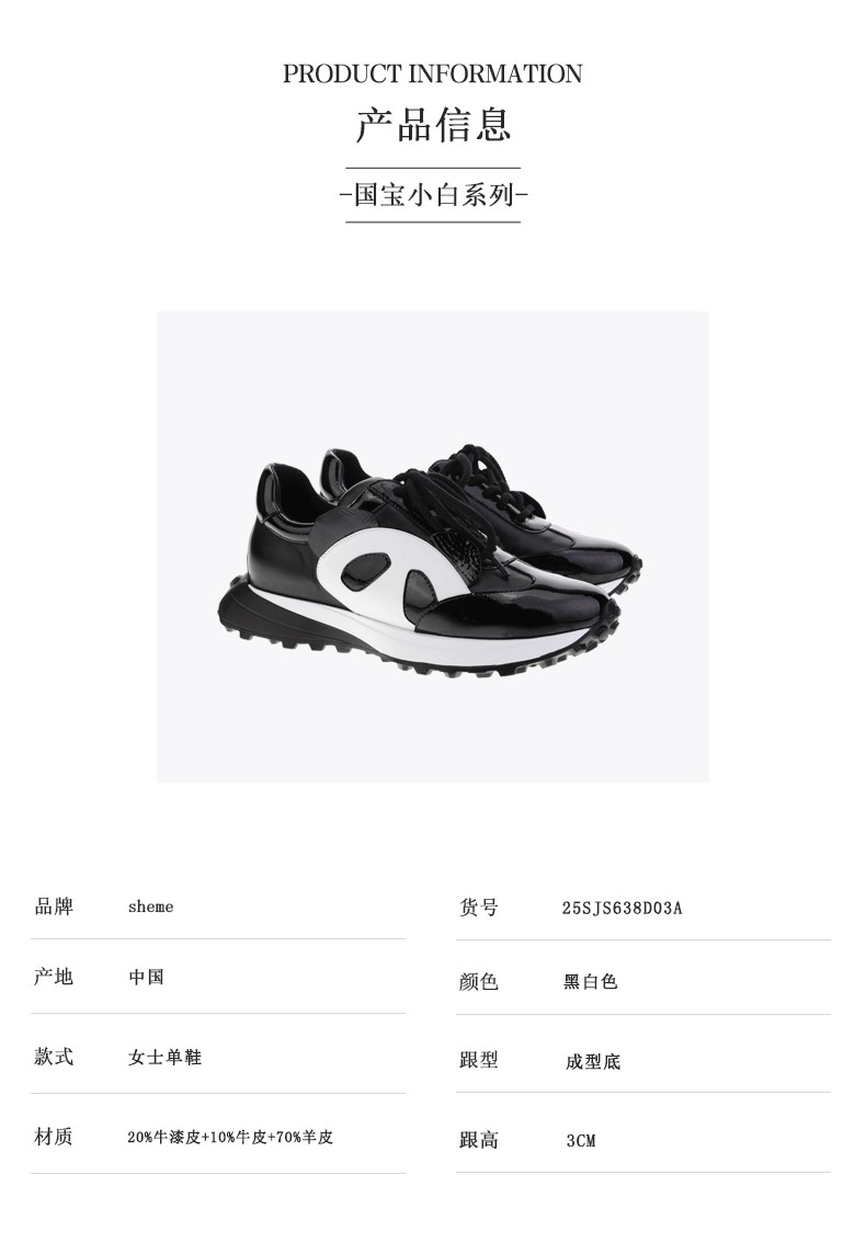 sheme国宝小白系列夸张熊猫头装饰可爱独特女士系带运动鞋可定制