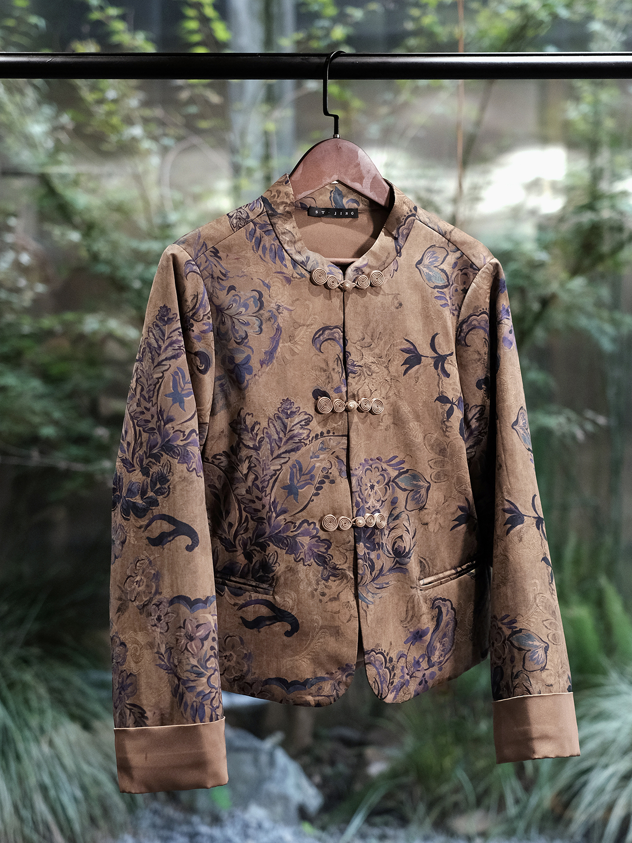 盛唐婧 | 真丝香云纱印花夹棉对襟外套-深咖色