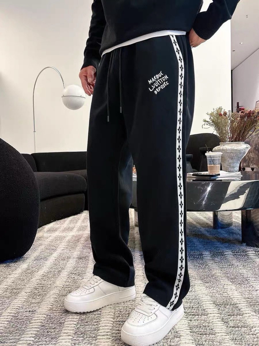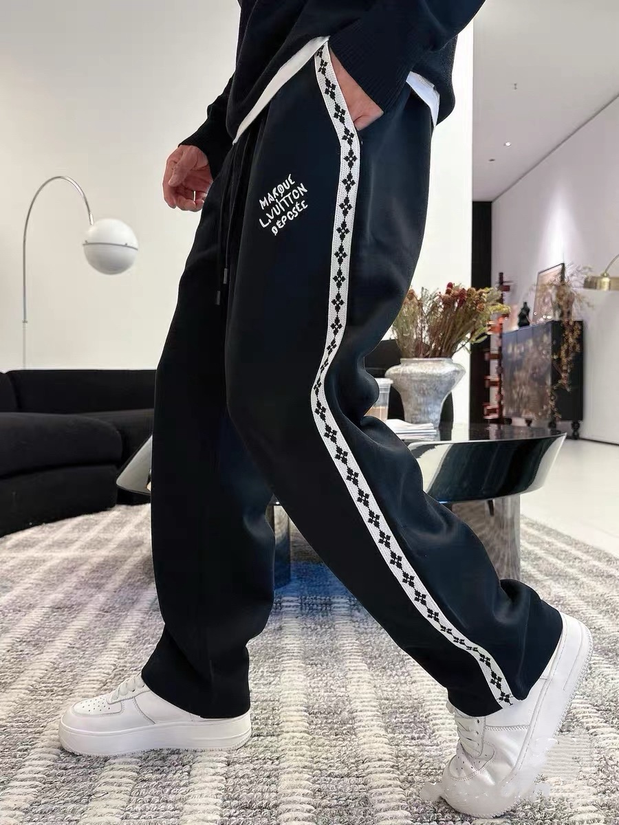 品名:Lv&25SS秋冬新款刺绣定制织带针织休闲宽松运动直筒 卫裤