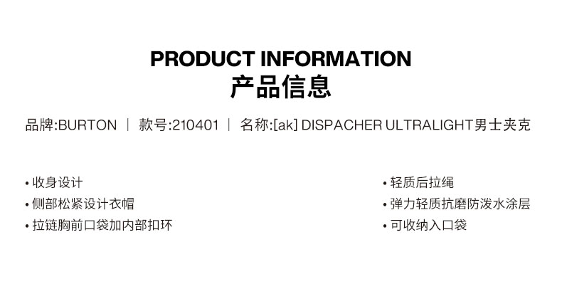 【AK六五折】BURTON伯顿男士[ak]外套DISPACHER收身薄款防晒上衣