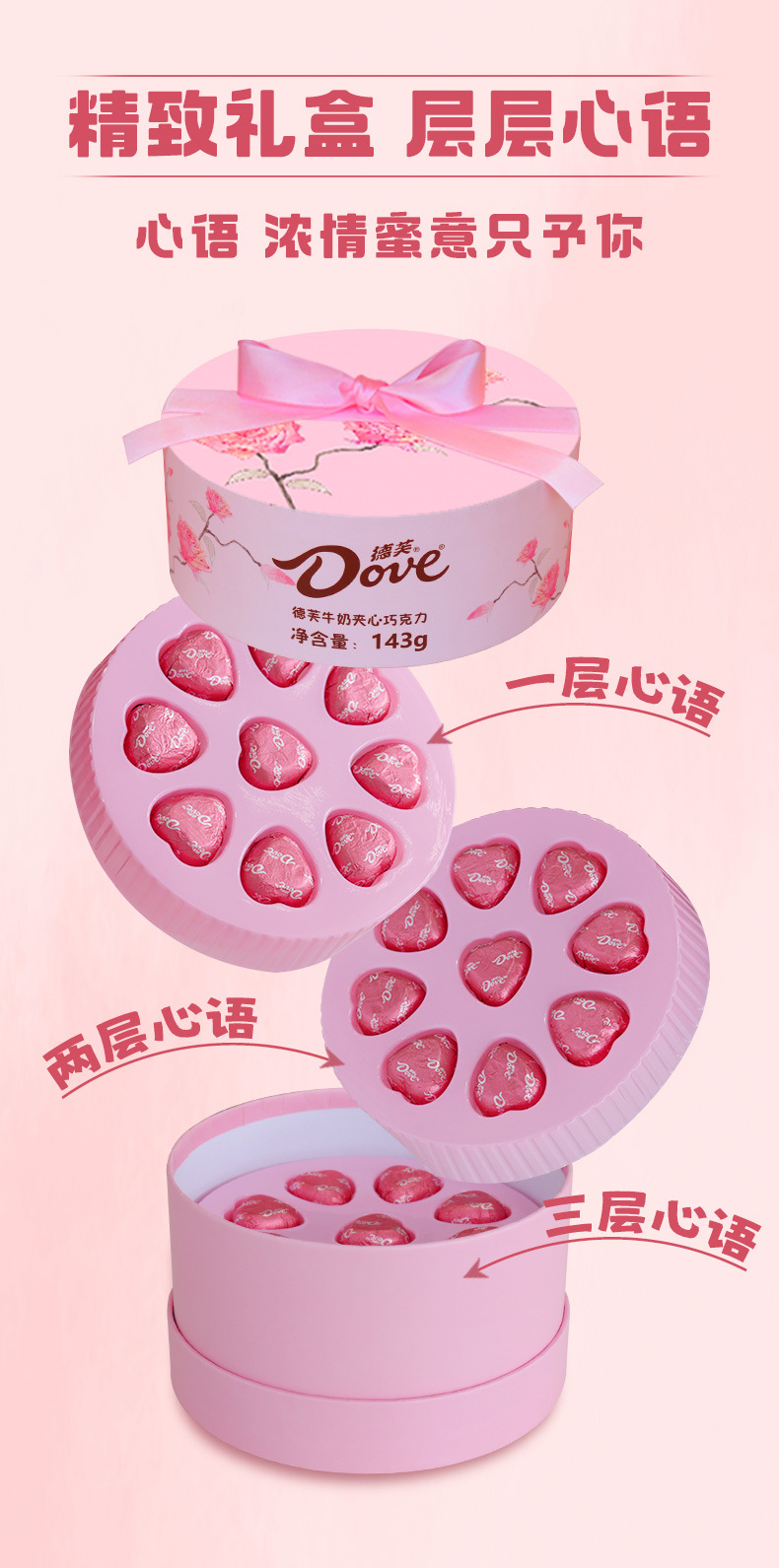 【粉丝福利❗️德芙巧克力三层礼盒】浓情蜜意只予你,粉色甜蜜,仪式感拉满!心语牛奶夹心套装情人节生日礼物送女友零食品