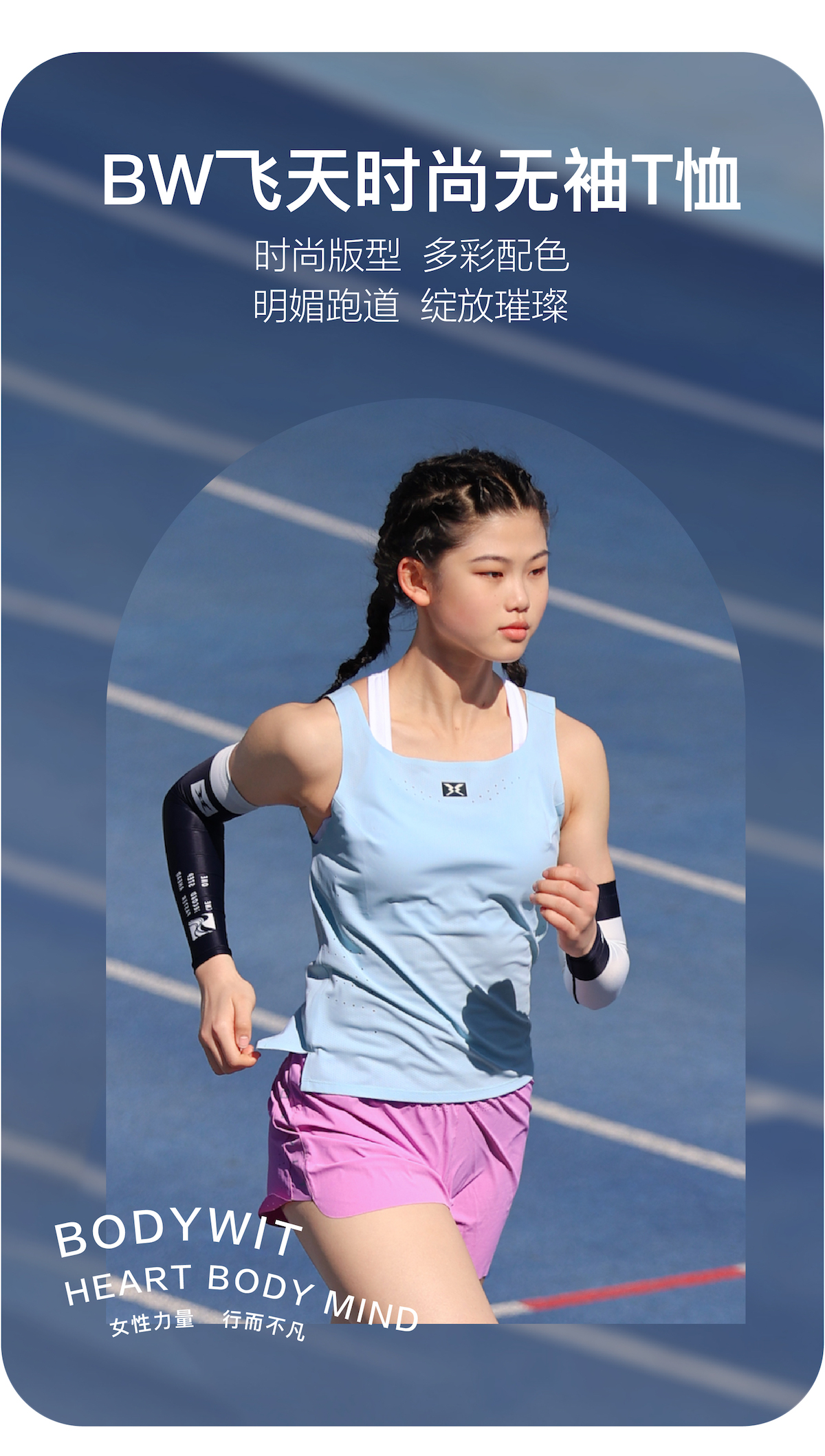 BODYWIT身体智慧飞天女速干时尚超轻网眼跑步健身无袖 T恤
