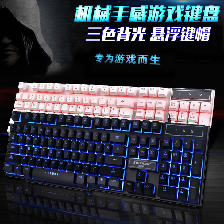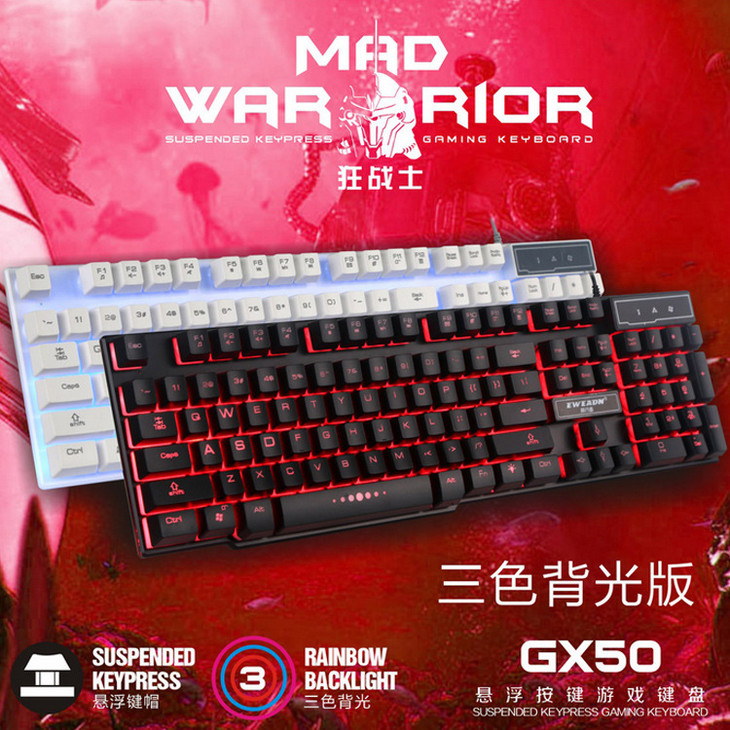 【键盘】前行者GX-50悬浮机械手感带铁板键盘 三色彩虹背光游戏USB键盘