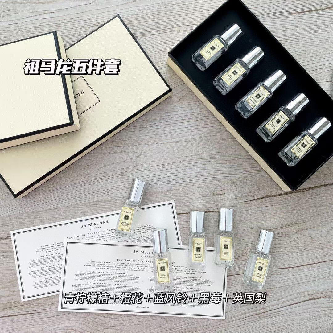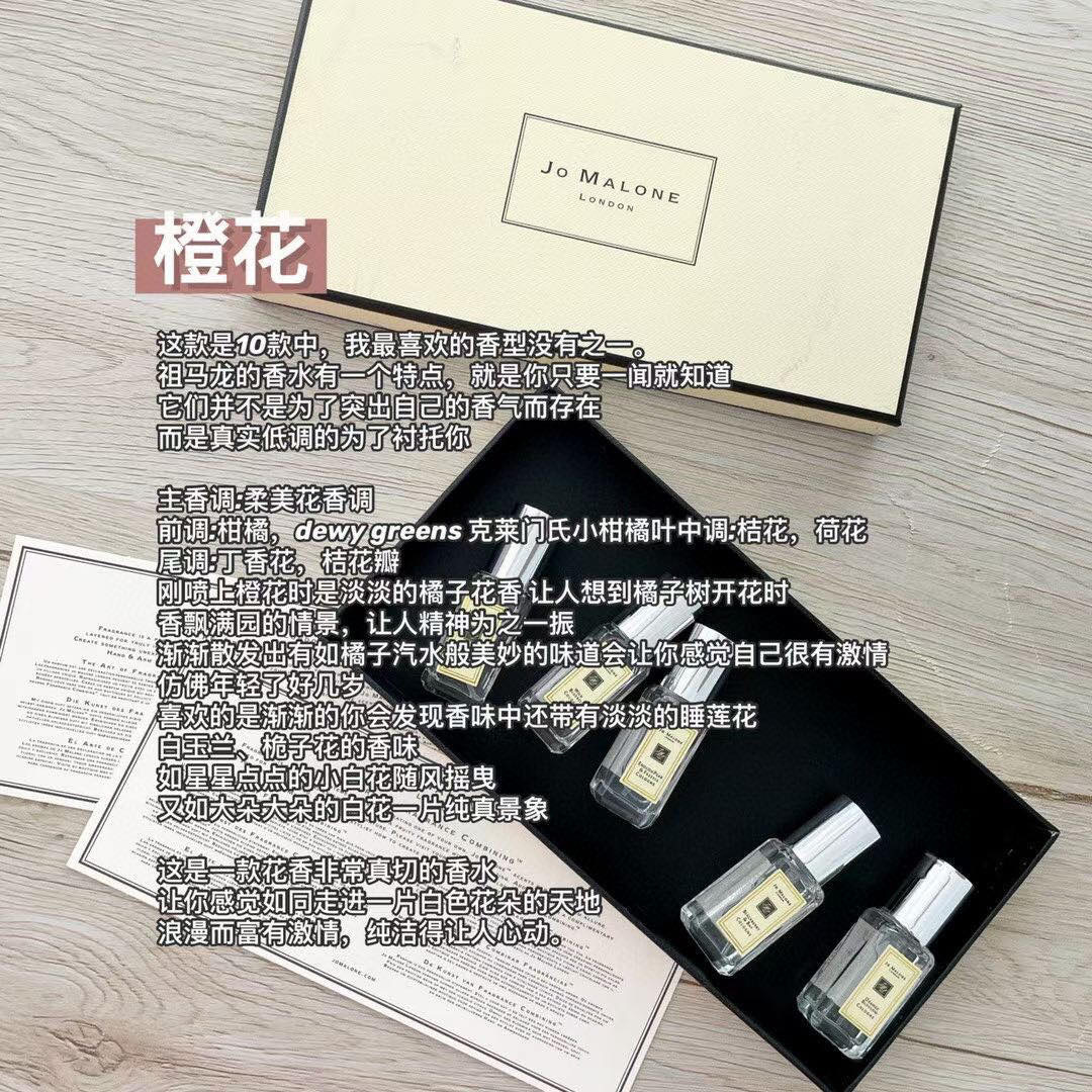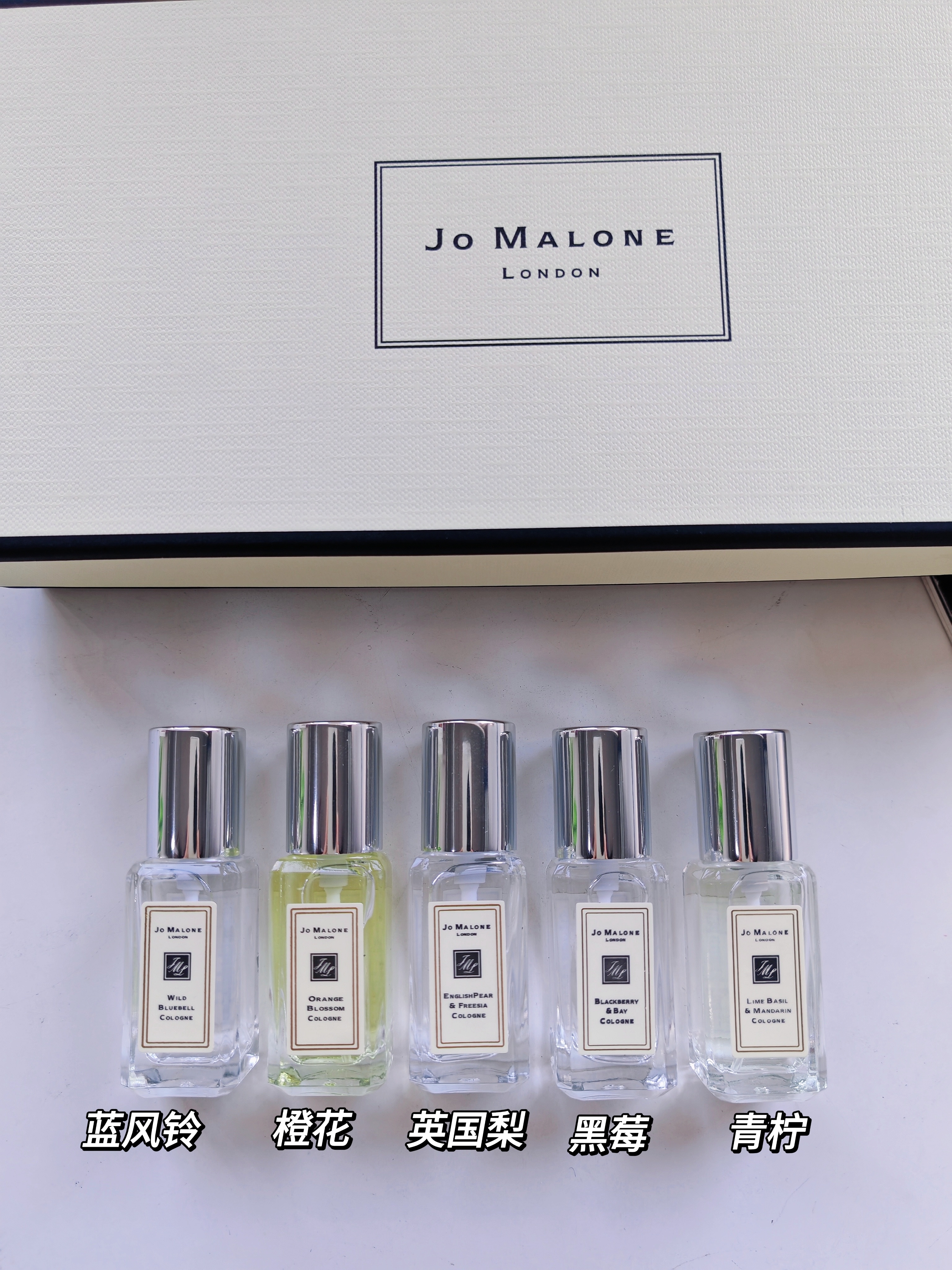 【祖玛珑香水五件套】 香水|祖玛珑Jo Malone英伦简约范 味道很纯粹 一盒集齐的香味青柠檬桔/橙花/蓝风铃/黑莓/英国梨 一盒5瓶,9ml*5,带礼盒,带喷头