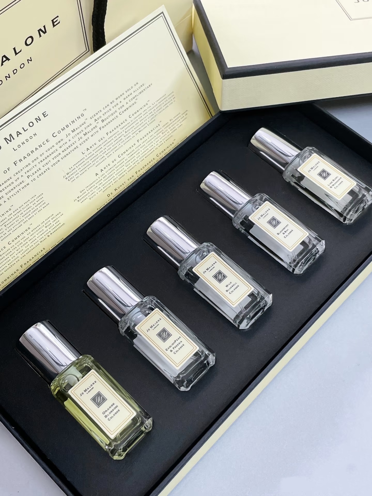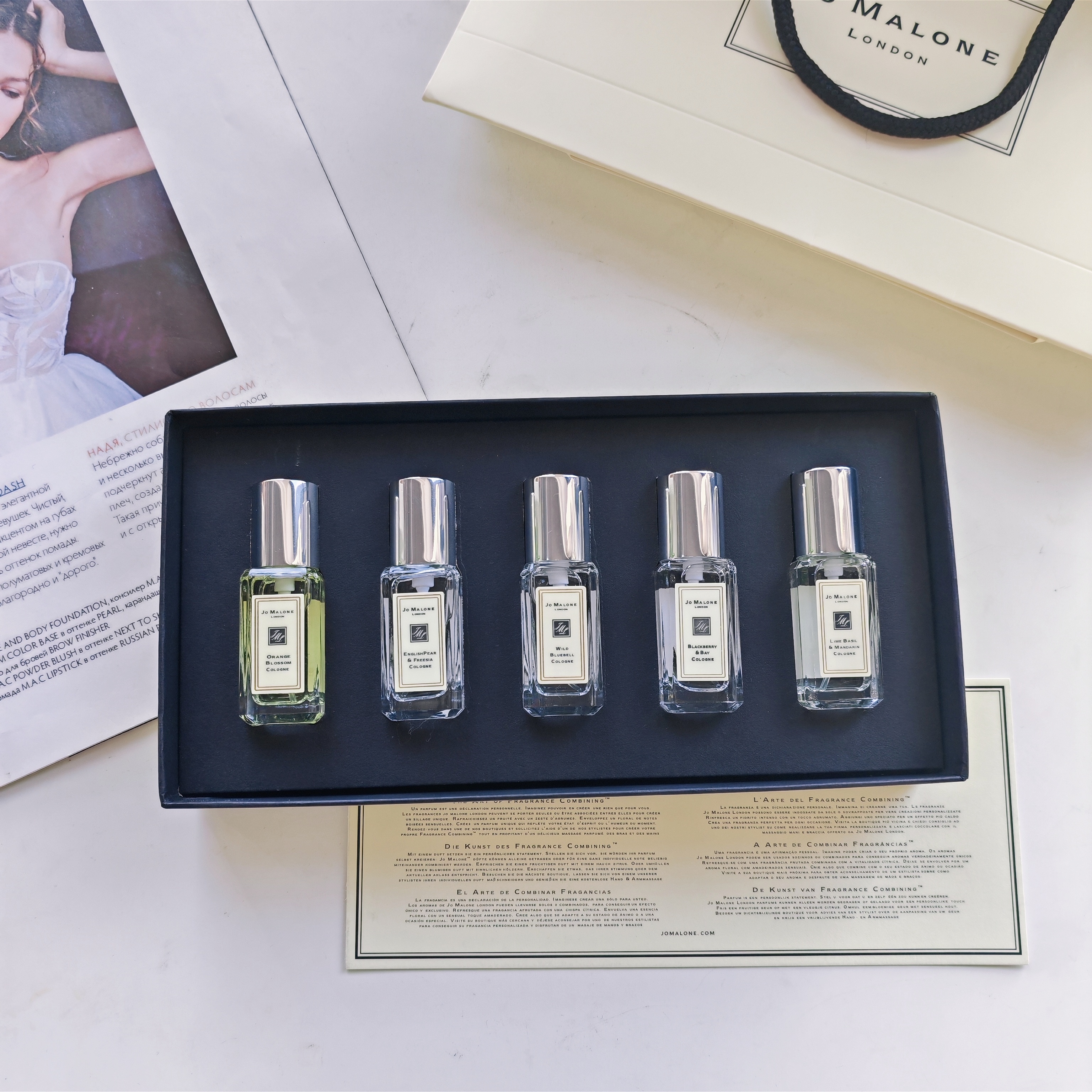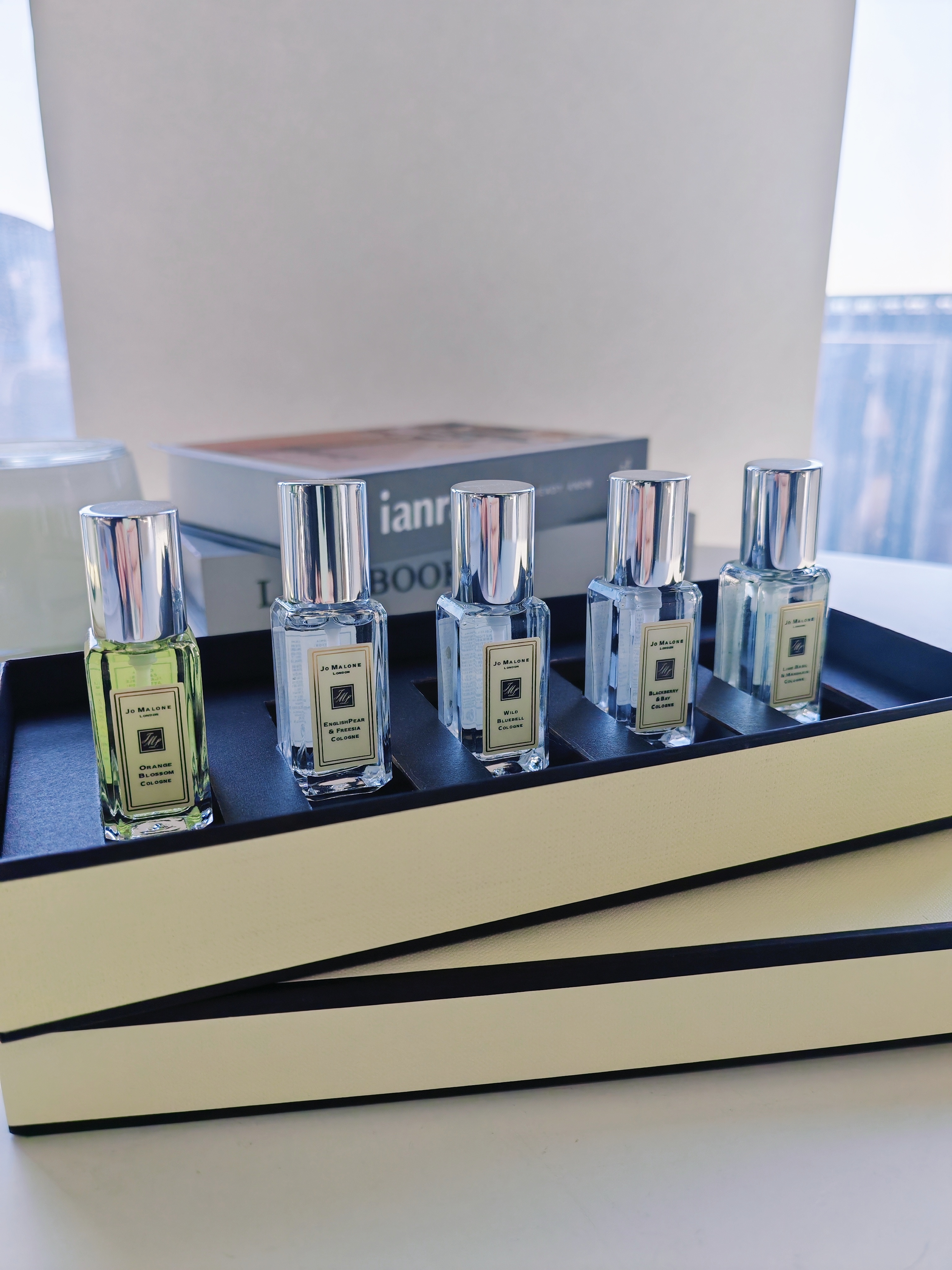 【祖玛珑香水五件套】 香水|祖玛珑Jo Malone英伦简约范 味道很纯粹 一盒集齐的香味青柠檬桔/橙花/蓝风铃/黑莓/英国梨 一盒5瓶,9ml*5,带礼盒,带喷头