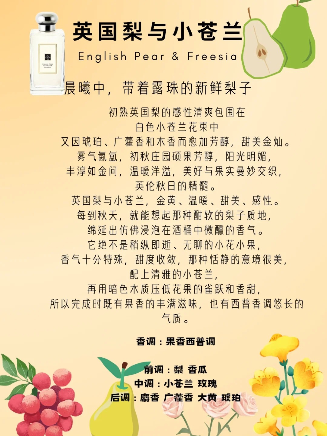 【香型】:青柠檬桔+橙花+蓝风铃+黑莓+英国梨