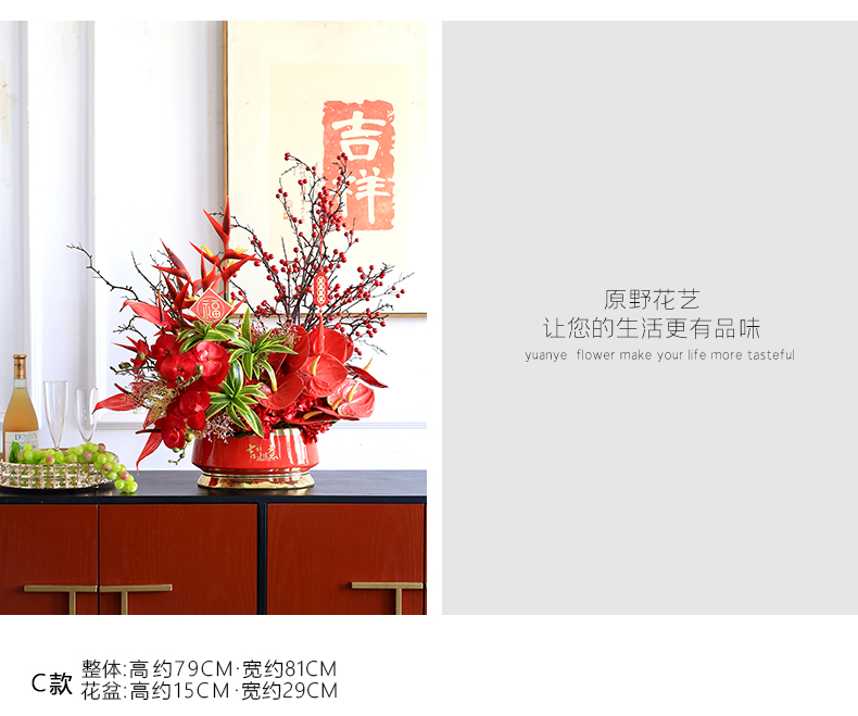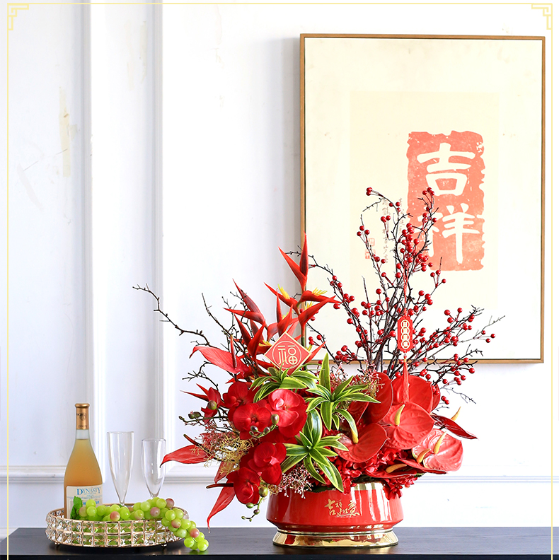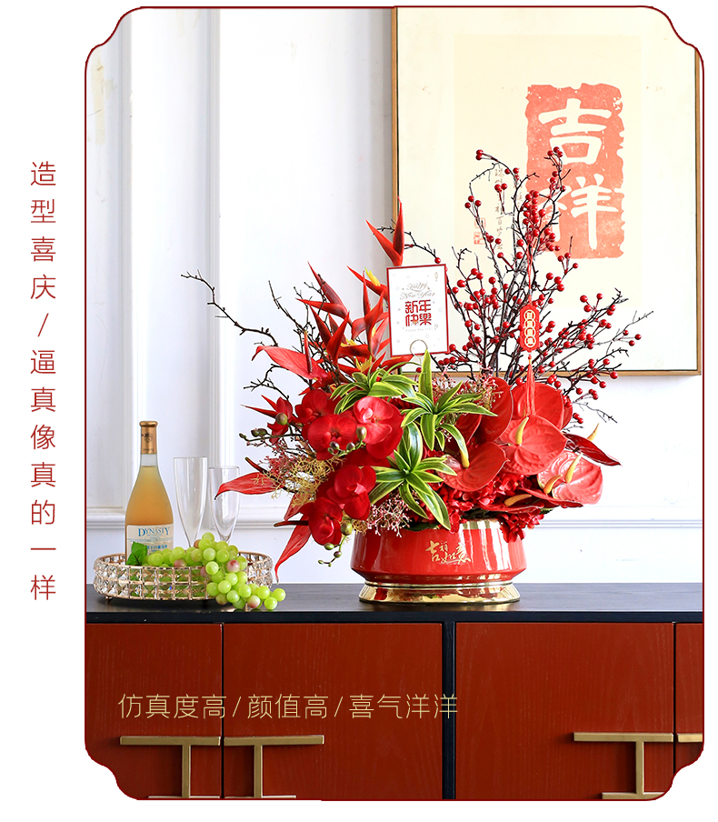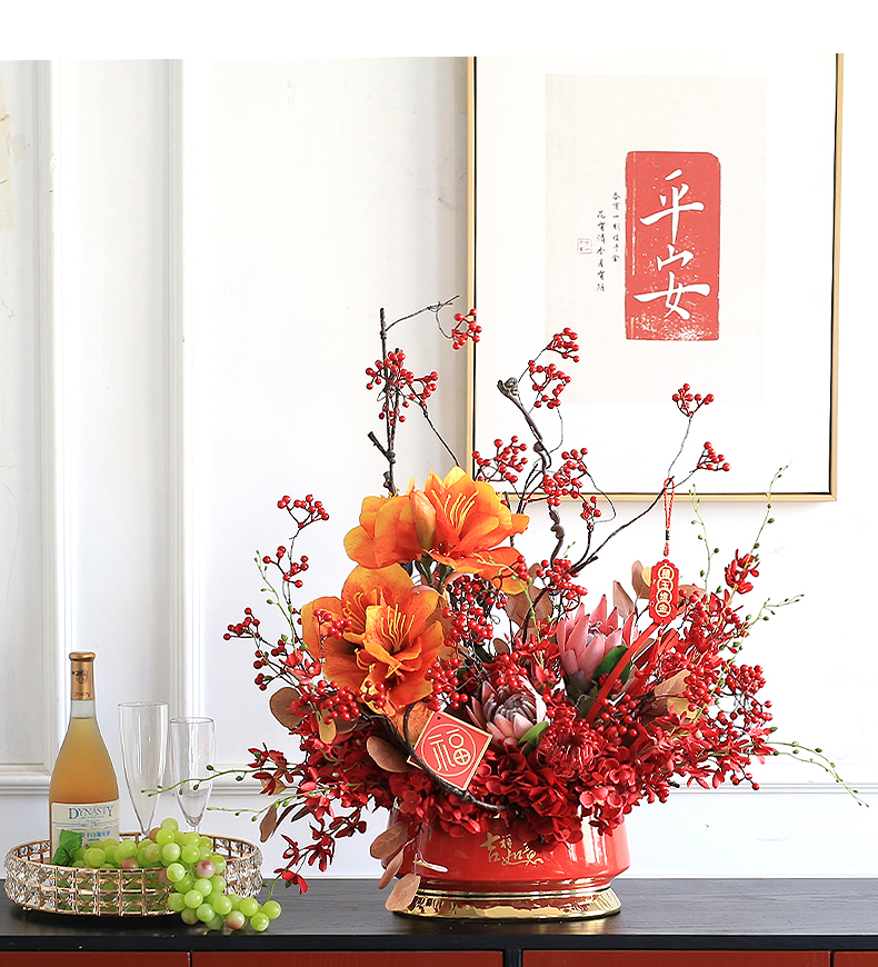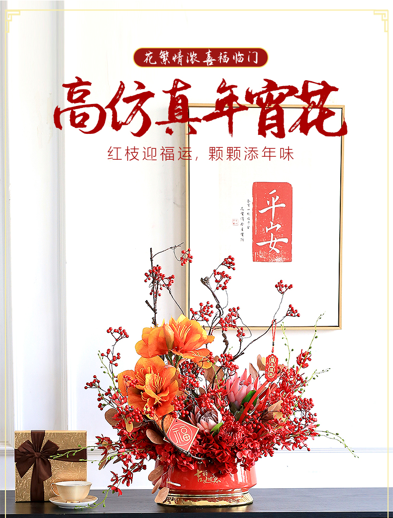 年宵花新年摆件发财果仿真花假花客厅摆设乔迁之喜装饰花搬家礼物