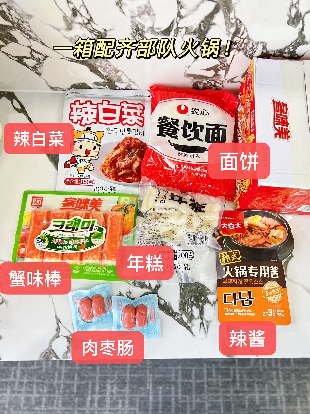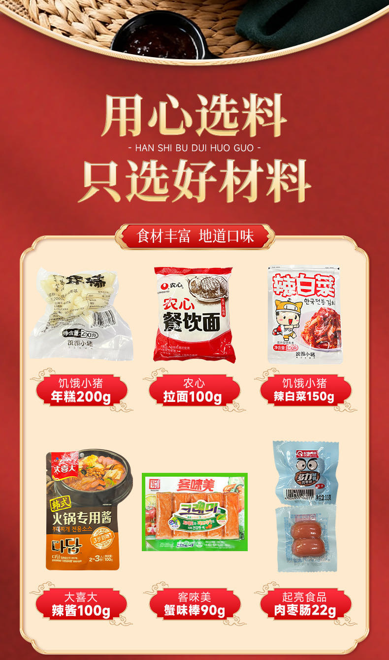 【客唻美韩式部队火锅】冬日暖胃优选,优选进口食材,5分钟速成韩式美味,配齐拉面/年糕/蟹棒辣白菜/肉枣肠,拆箱即煮