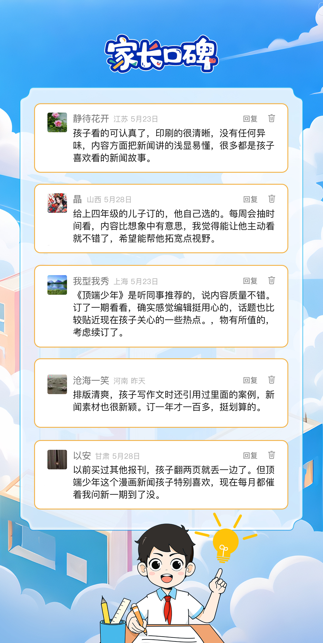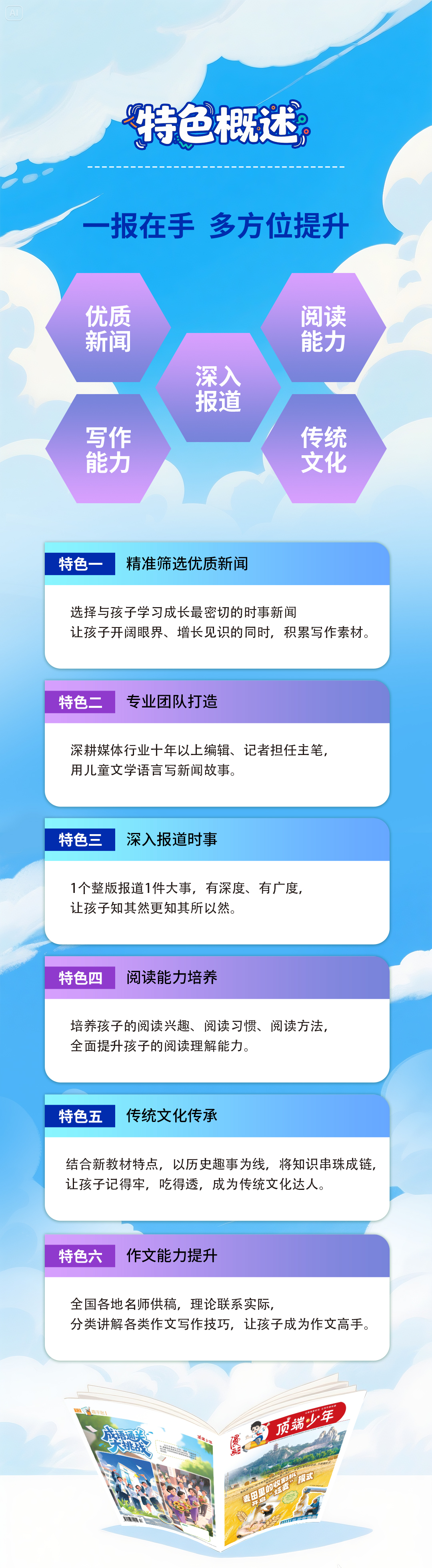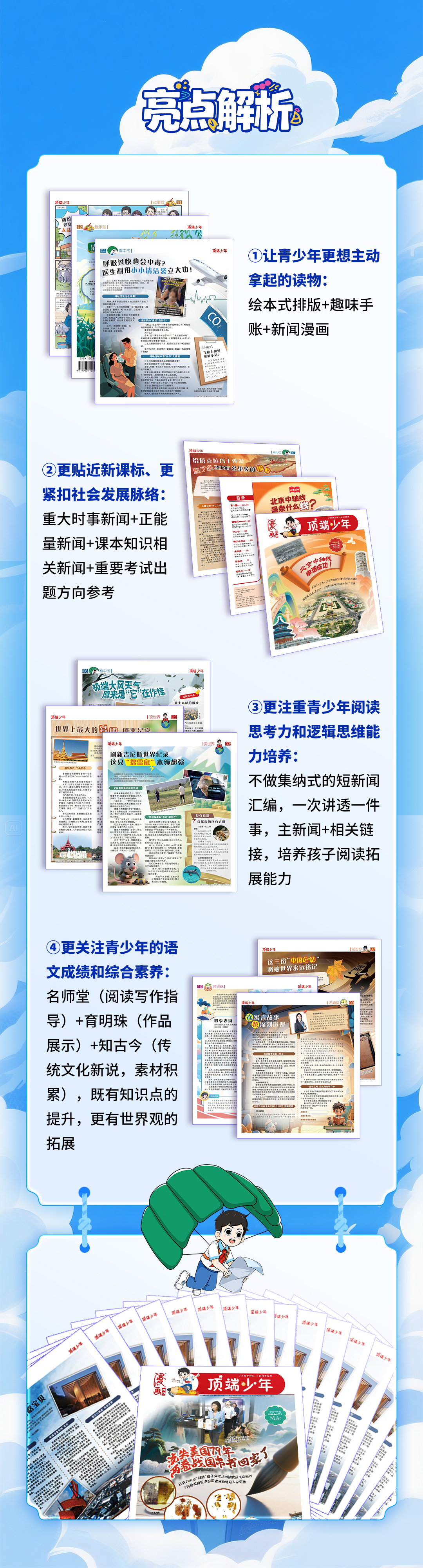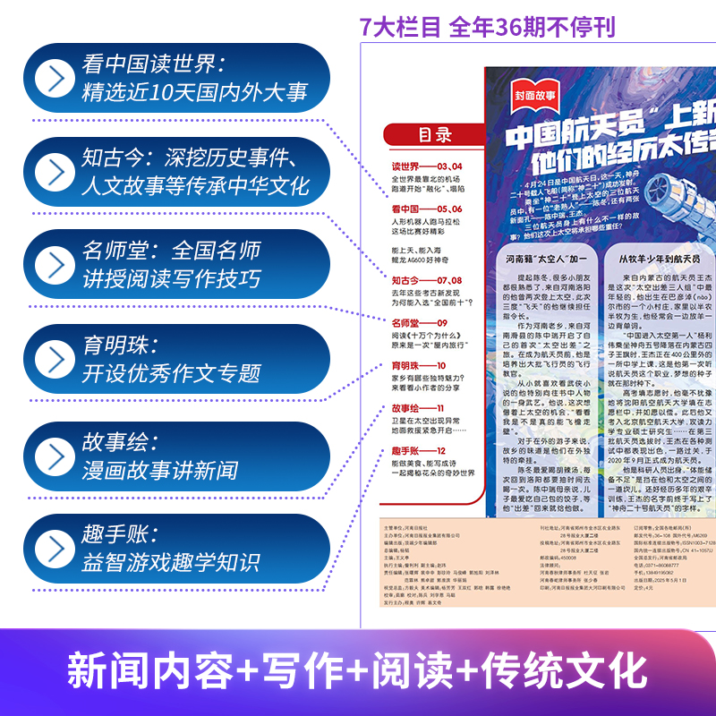 顶端少年杂志2025年11月-2026年10月全年刊 共36期 每月发3期 发12个月 重大时事新闻+写作+阅读+传统文化