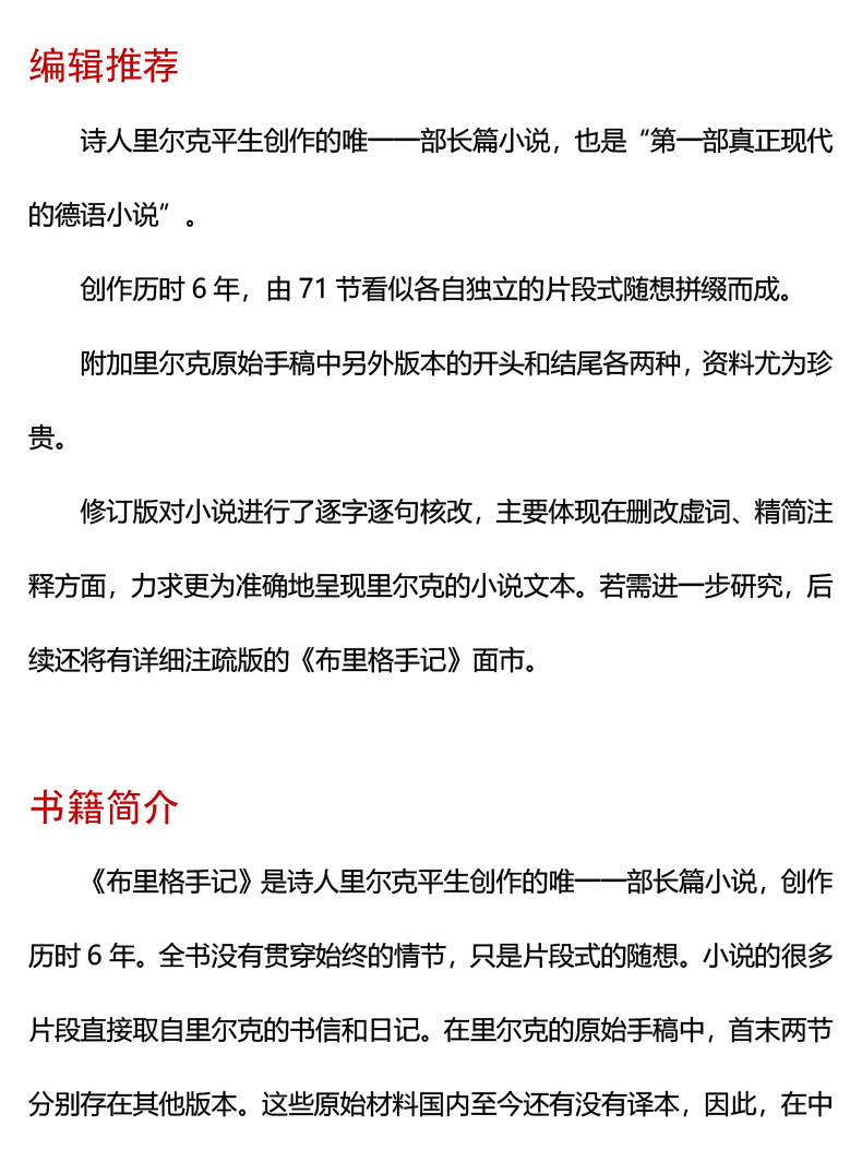 布里格手记 修订版 诗人里尔克平生创作唯yi长篇小说 里尔克原始手稿 德语文学 精装
