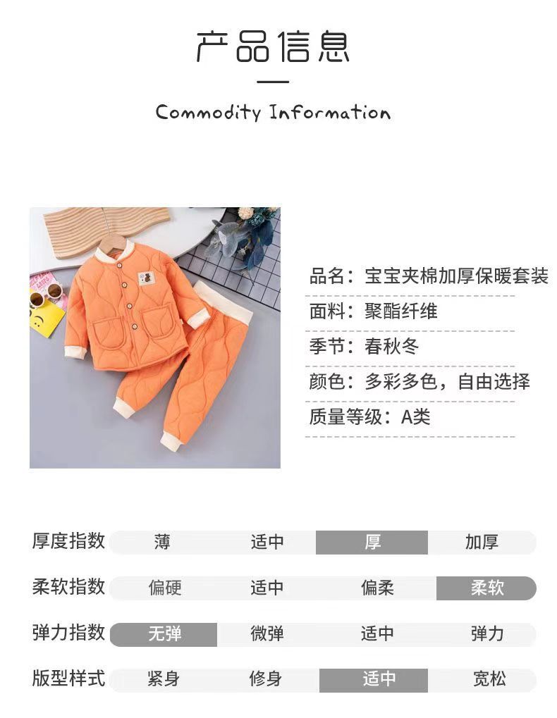 【保暖又萌趣 加厚儿童棉衣套装】儿童秋冬新款棉服套装家居服户外两件套男女宝宝棉衣棉裤休闲套装