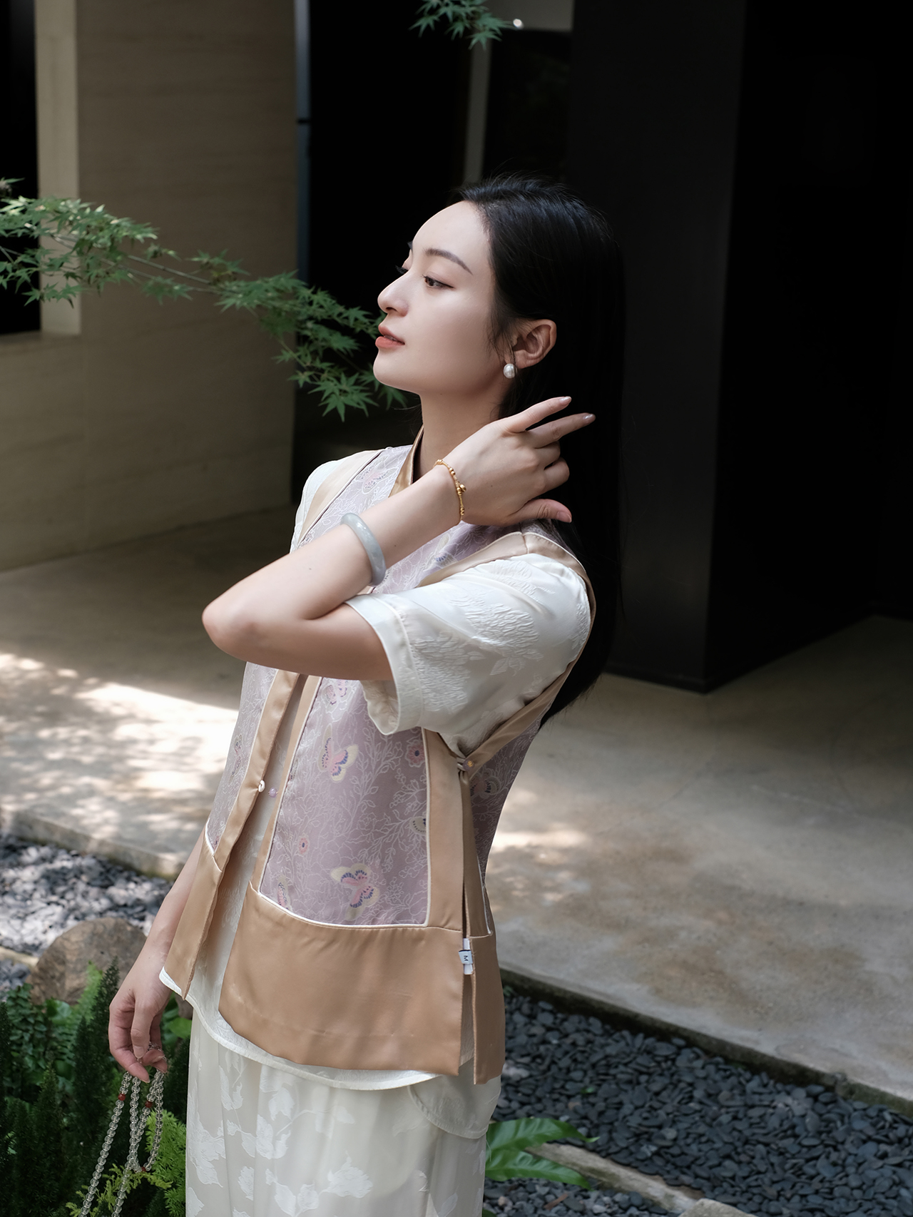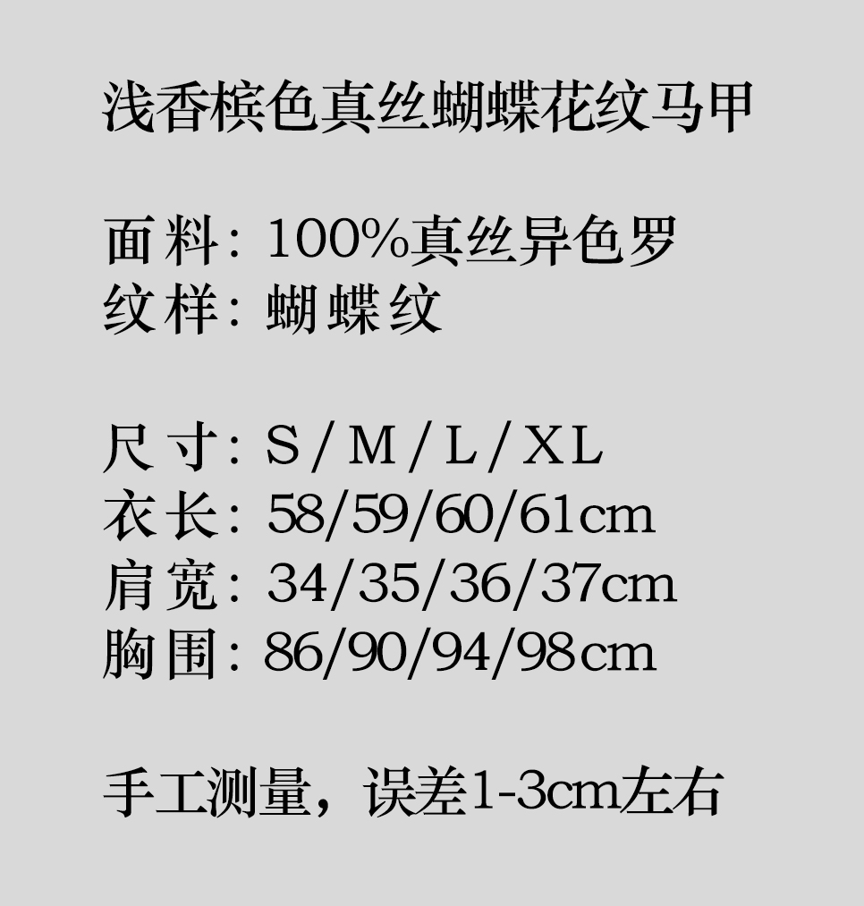 瑕疵|盛唐牡丹 |浅香槟色真丝蝴蝶花纹马甲[特价品]