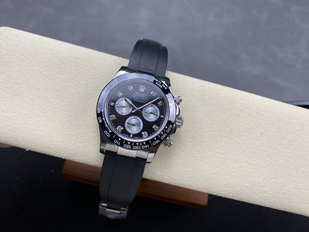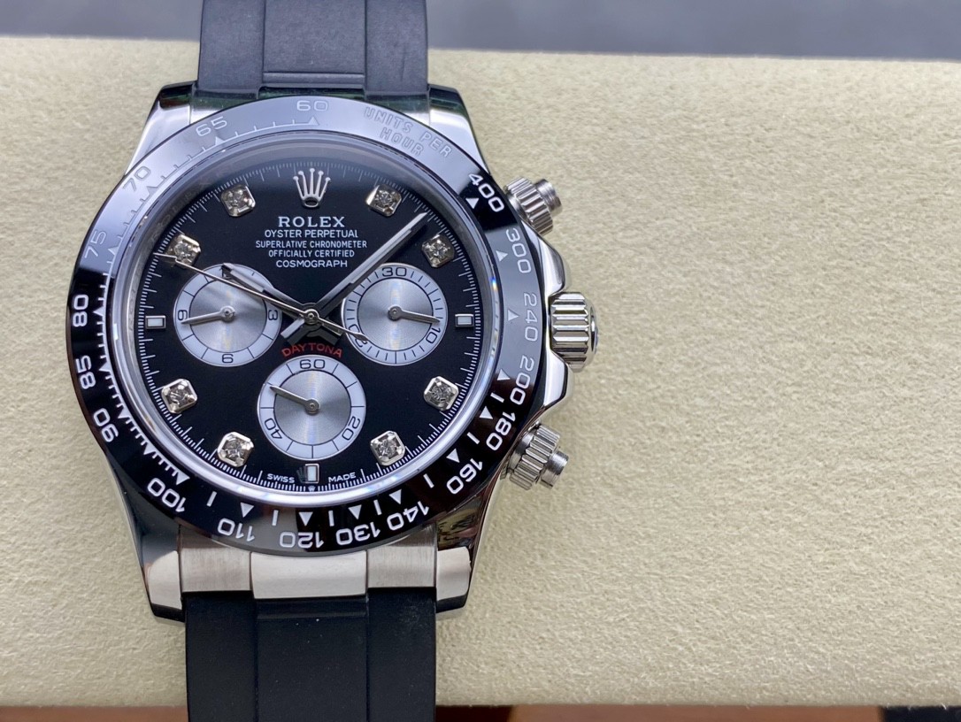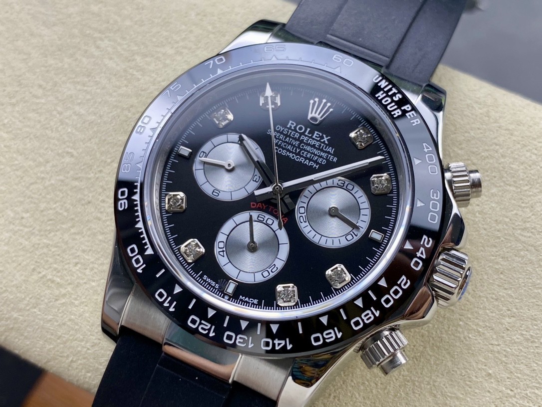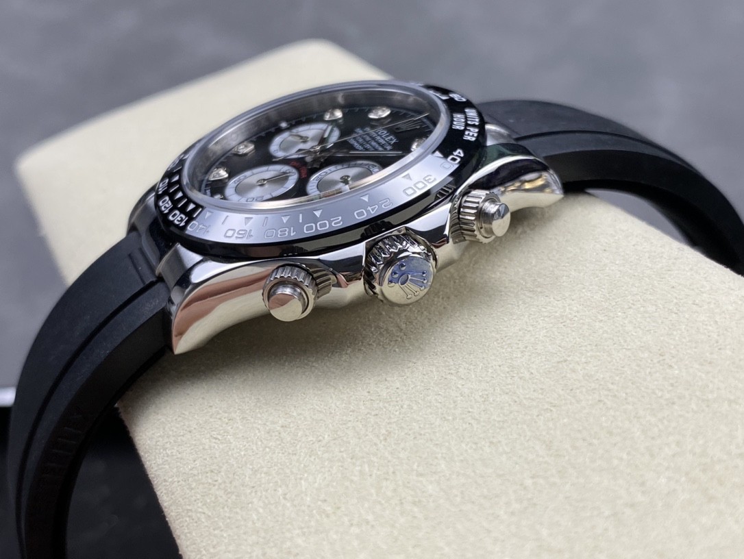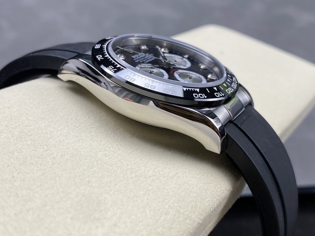 1: 采用真陶瓷工艺、刮不花、永不退色、质感好,功能盘字体和盘面logo采用叠加印刷工艺,从侧面观察会有微微隆起之感,盘面的底色纹路经过滤改正,其上的劳力士金属logo单独开模,无论是立体感还是圆润度均可PK原装 易读Chroma light夜光显示 配长效夜光物质,表镜平形蓝宝石水晶玻璃 抗刮损,效果不重影,有防伪的小皇冠。