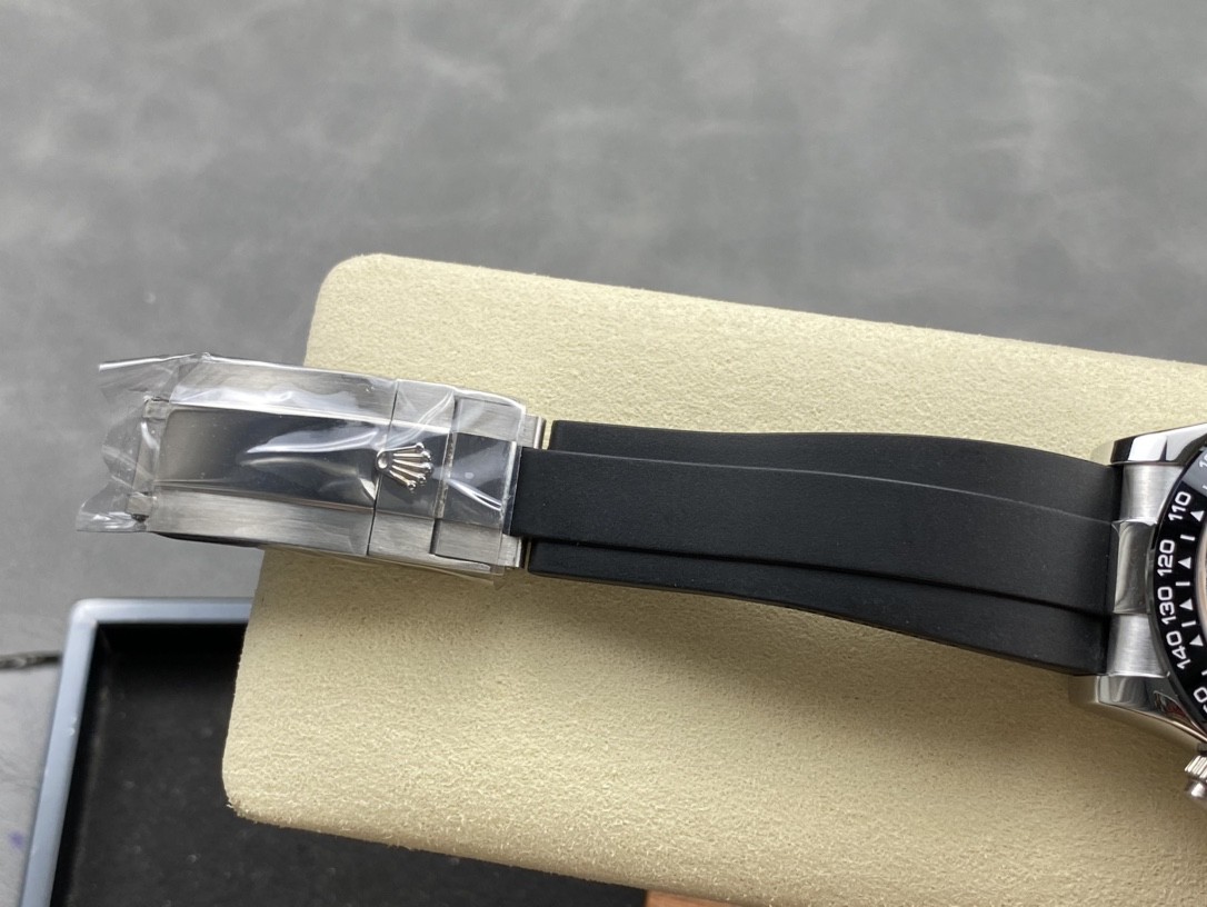 2:注意细节,表扣采用进口精钢1:1散件打磨而成,拉沙内侧,腐蚀劳力士钢印,外置正品一模一样的表扣保险环,