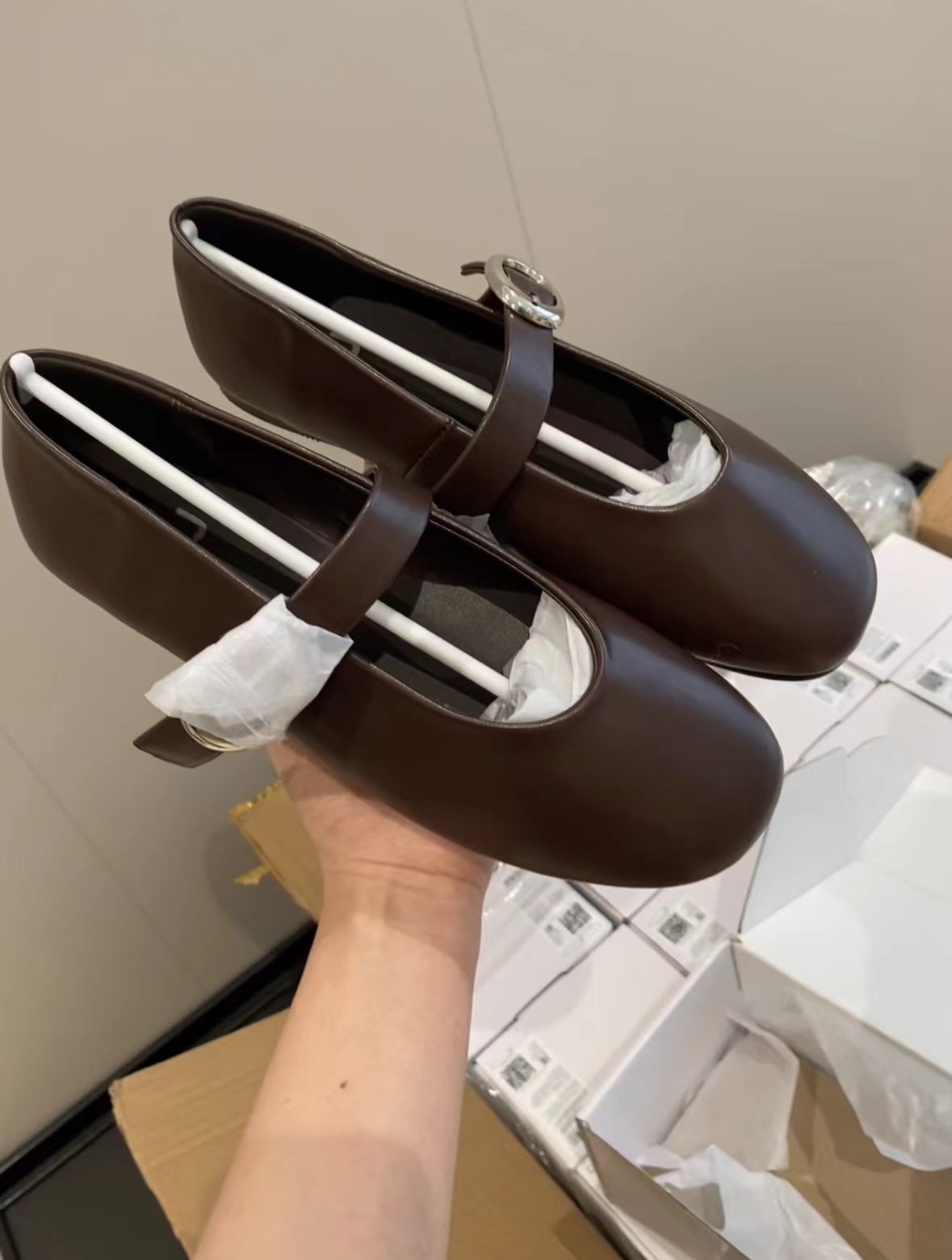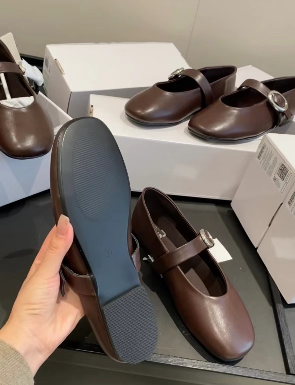 这双深棕玛丽珍鞋,是把复古优雅揉进日常的温柔单品。鞋面采用细腻PU材质,触感柔软亲肤,表面带着自然的哑光光泽,耐穿易打理,日常通勤或休闲出街都能轻松应对。jing典圆头设计包容各种脚型,搭配一字扣带与金属圆扣,既修饰脚踝线条,又添了几分复古感,走路时稳稳贴合不晃脚。低跟版型舒适不累脚,从早到晚都能保持自在姿态,深棕色调百搭耐看,适配裙装、裤装,轻松拿捏温柔通勤风。