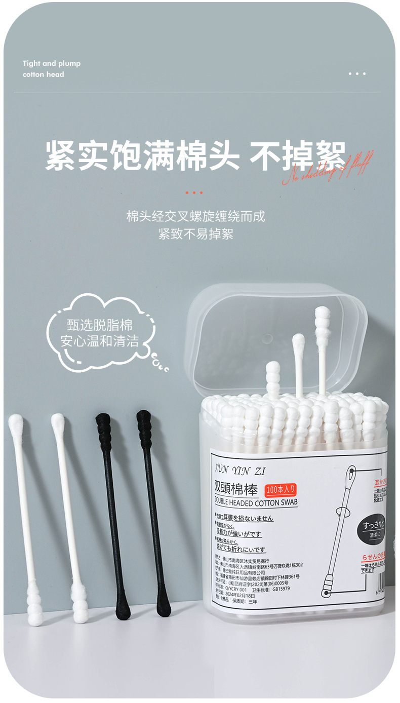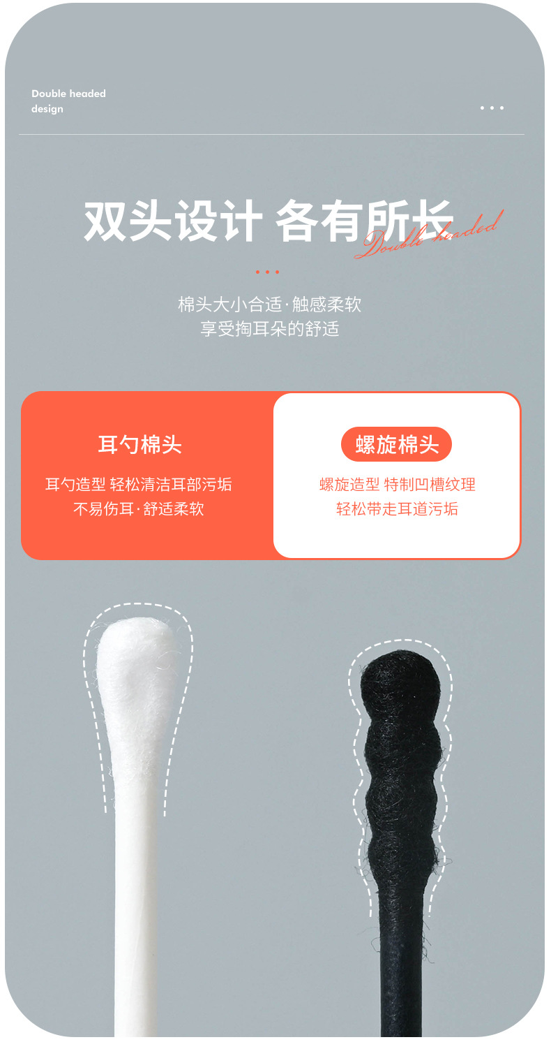 【为清洁而生❗️家用双头棉签】螺旋纹理设计,深度清洁耳道、缝隙,吸附污垢更彻底,化妆卸妆、清洁死角超好用,挖耳勺耳道专用棉棒一次性化妆双头棉花棒L
