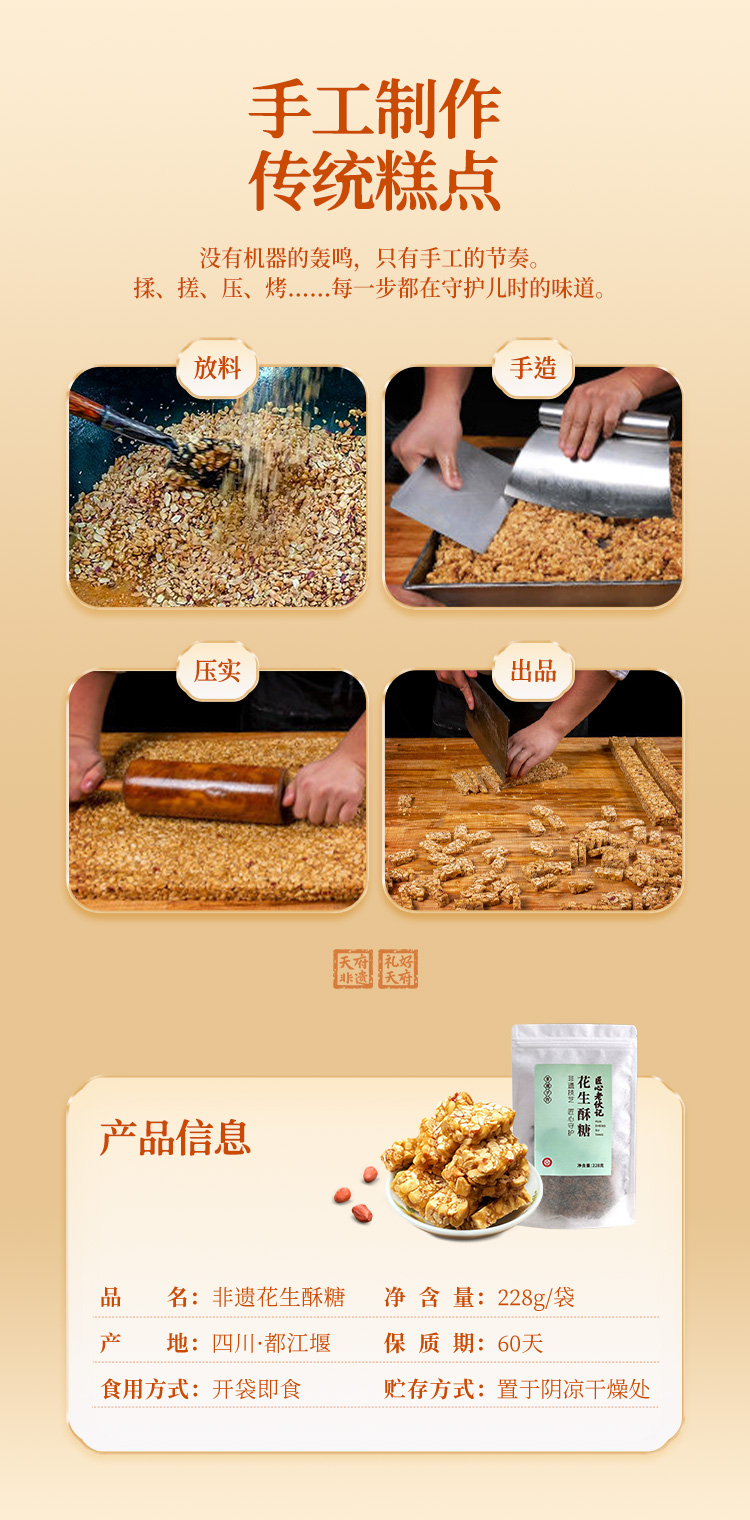 【非遗花生酥糖228g袋装】非遗传统小吃花生酥糖 甄选原料 甜而不齁清甜 手工制作日常解馋零食【四川特产】【非遗技艺】