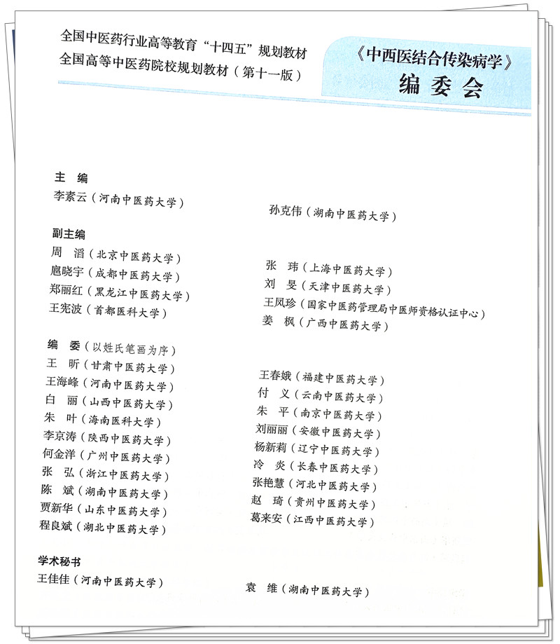 中西医结合传染病学 李素云 孙克伟 主编 中国中医药出版社 全国中医药行业高等教育十四五第十一版规划教材