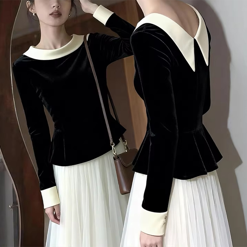 裁缝学苑AS661法式设计感拼色边丝绒衬衫纸样女装新款百搭显瘦上衣图纸