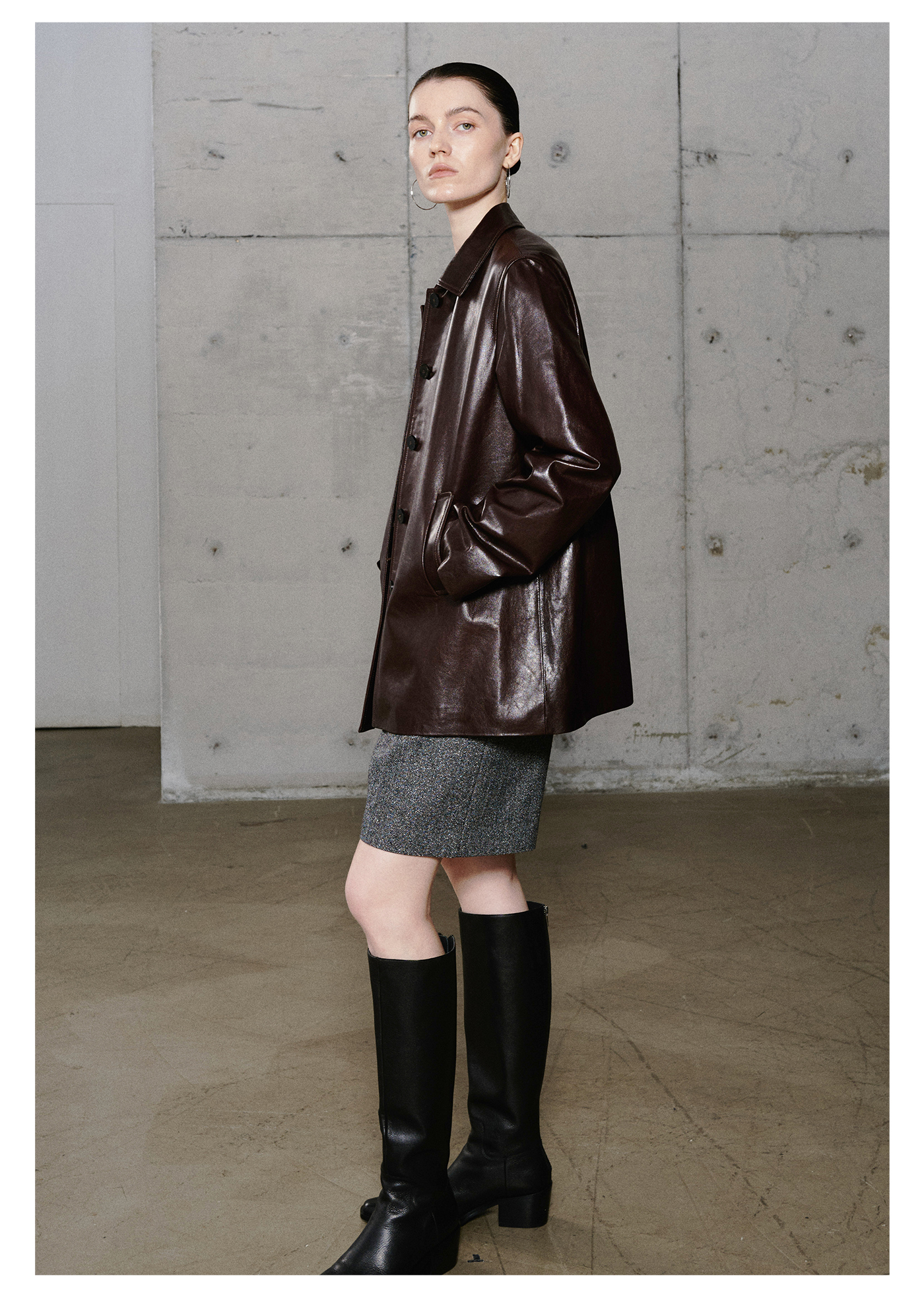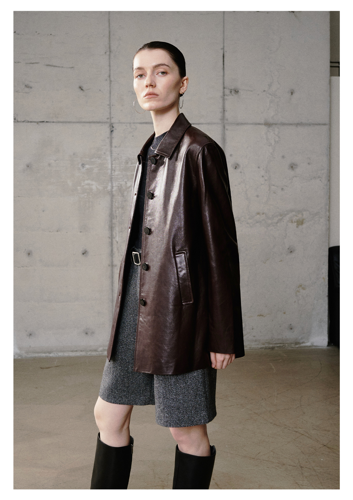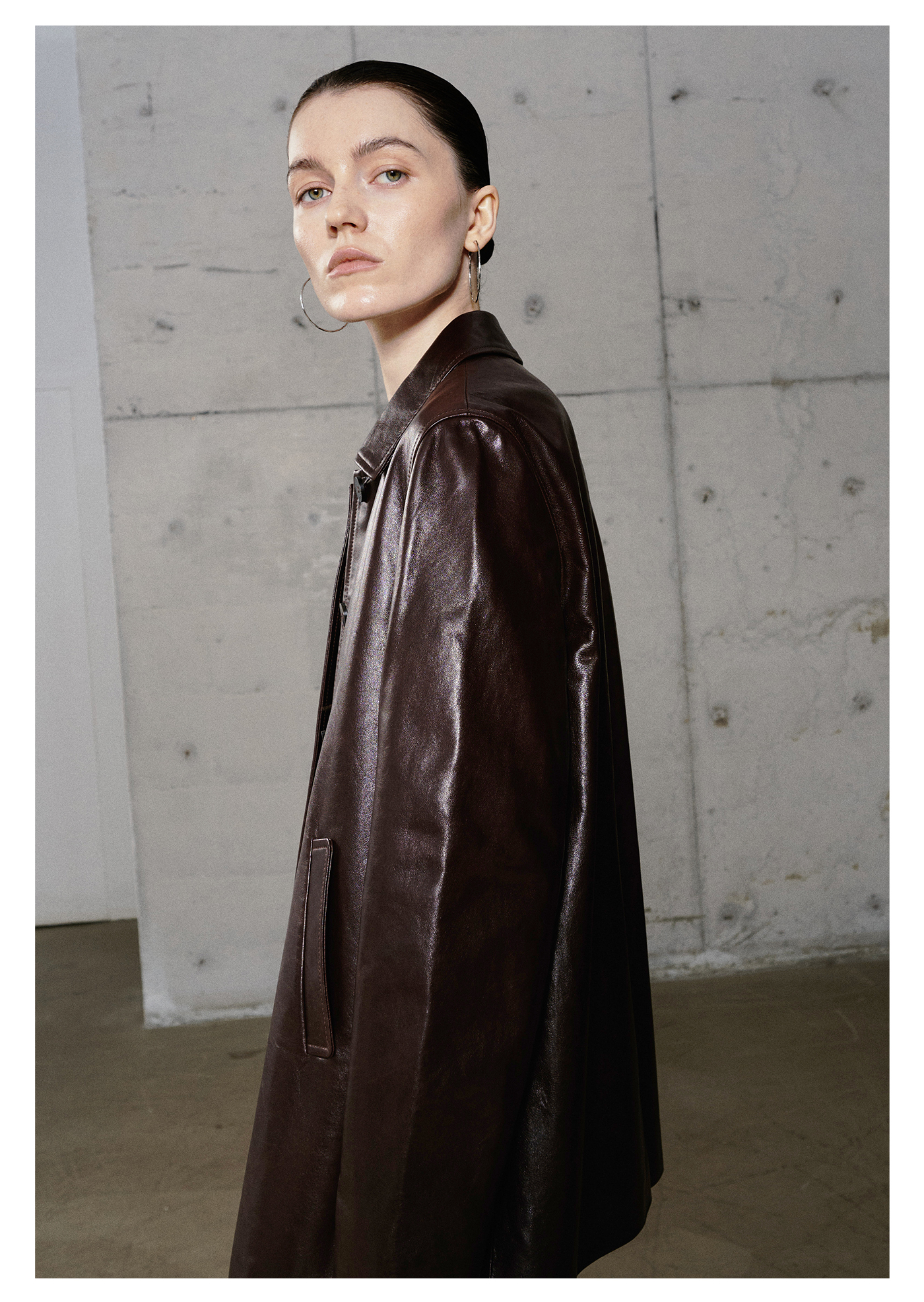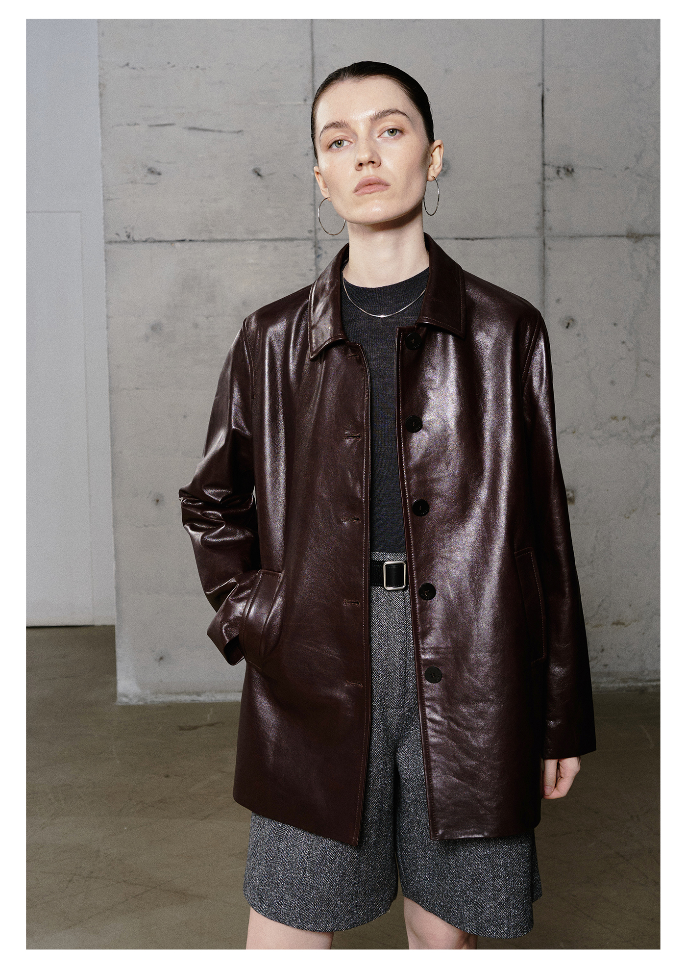 棉仓3661527003-油蜡羊皮翻领皮衣外套女 25秋冬棕色中长款风衣式皮衣
