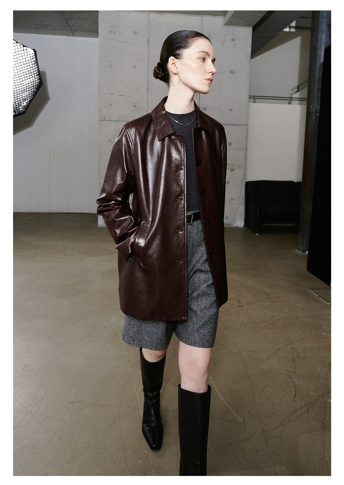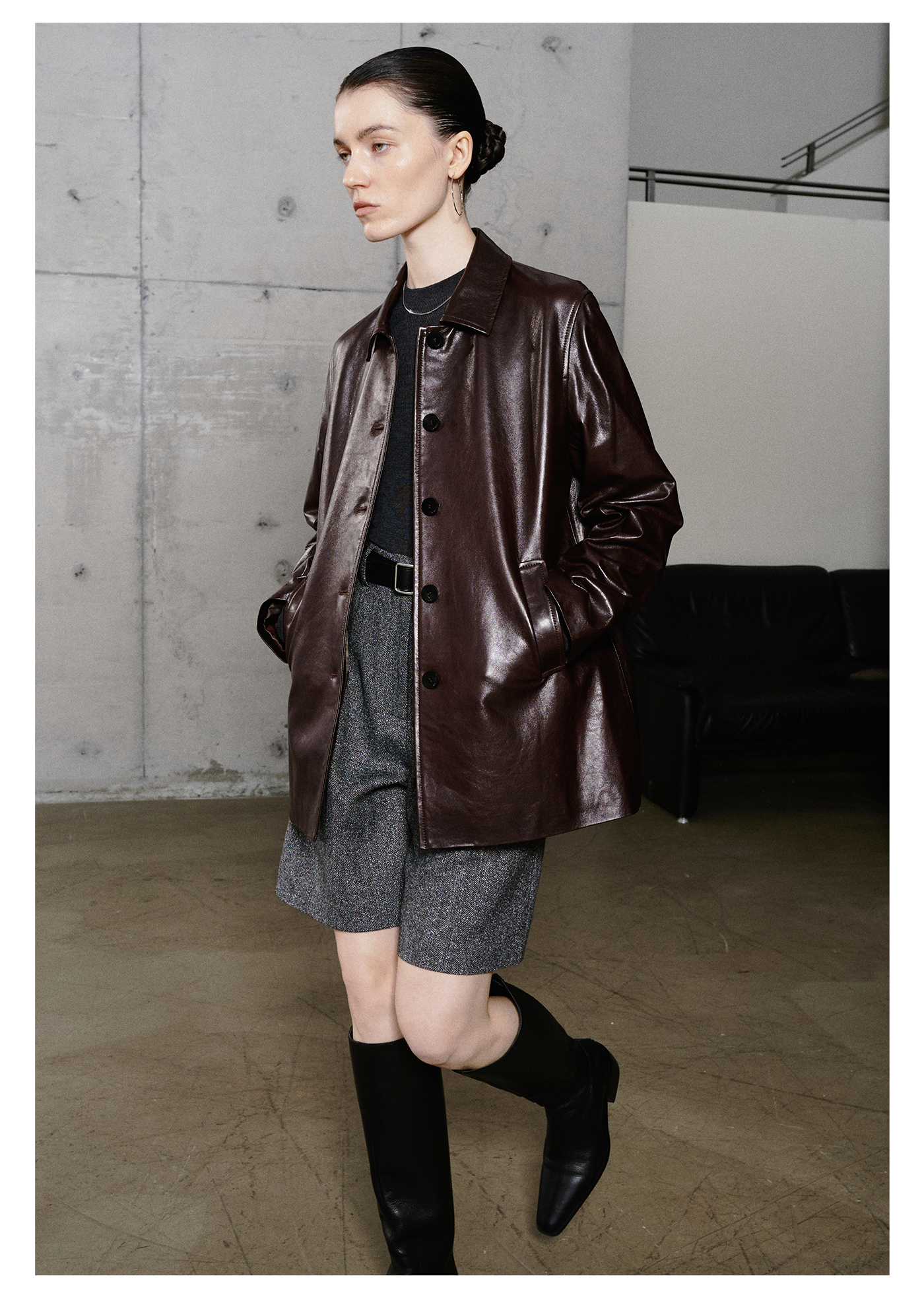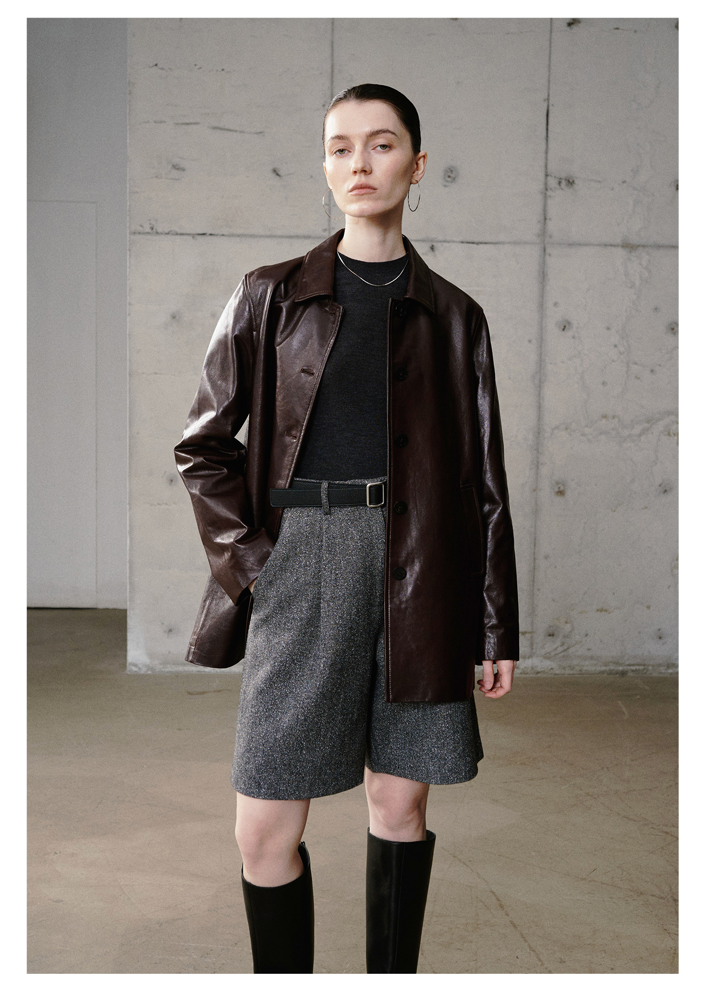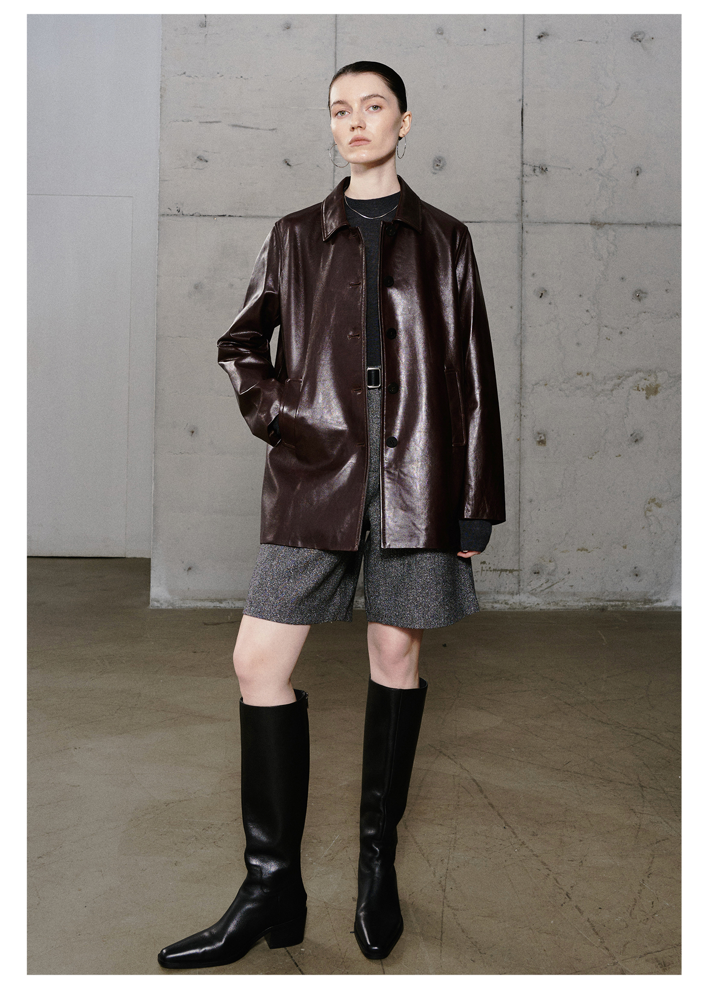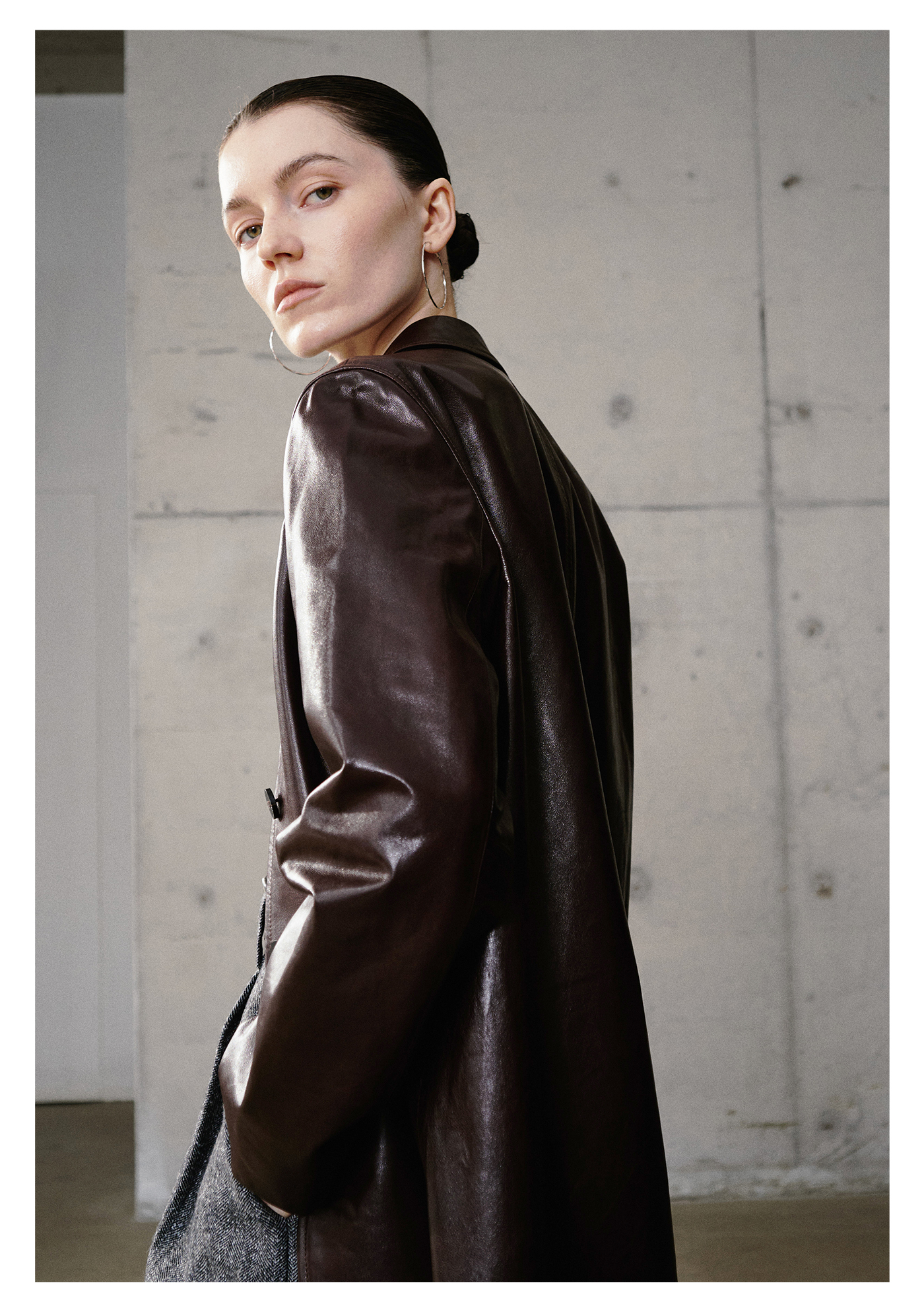 棉仓3661527003-油蜡羊皮翻领皮衣外套女 25秋冬棕色中长款风衣式皮衣