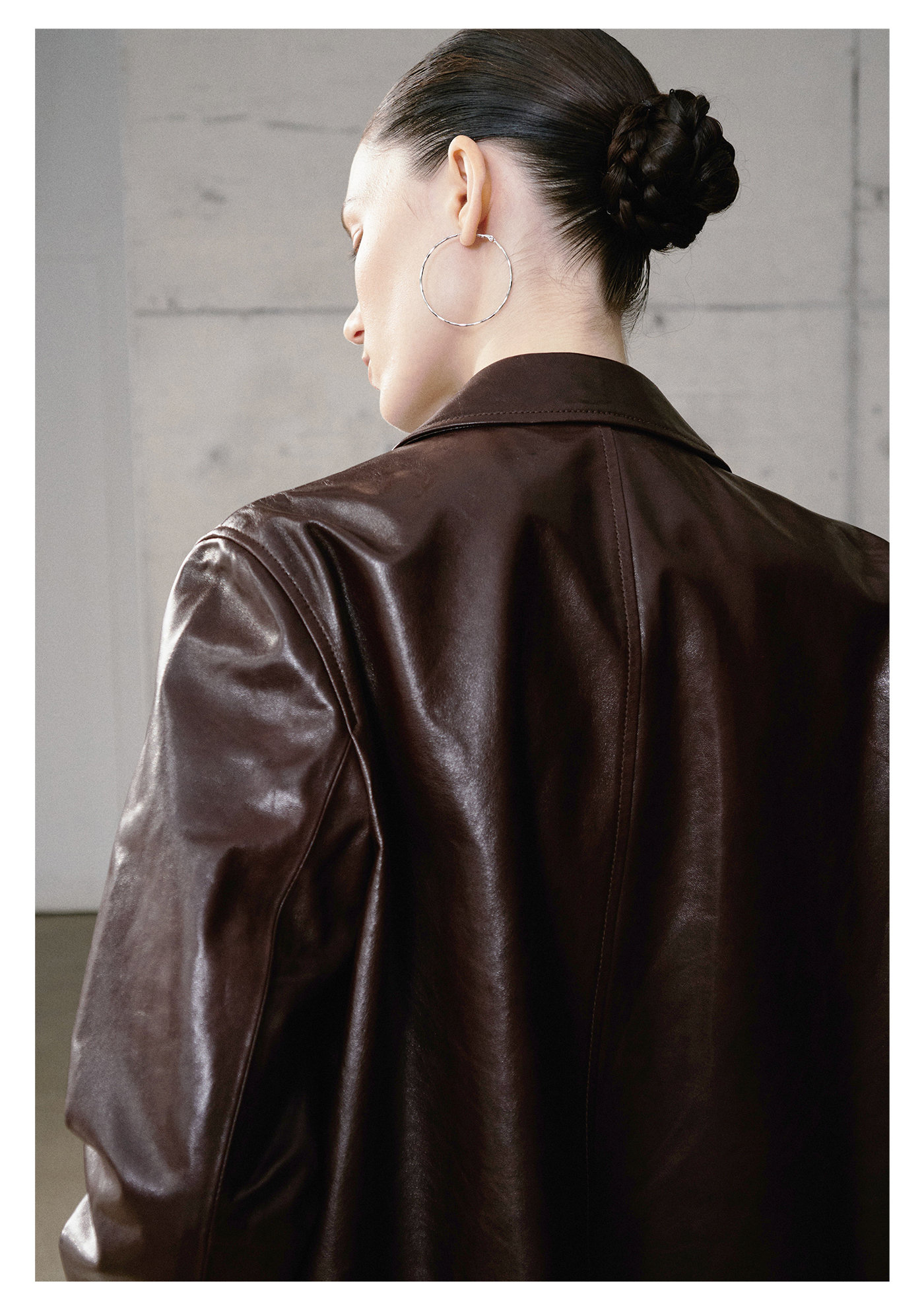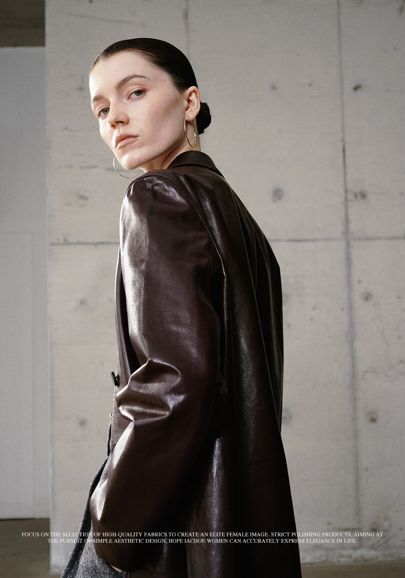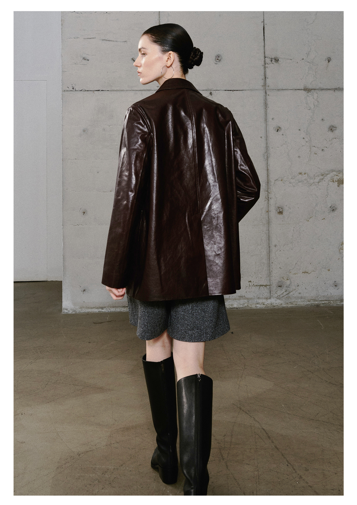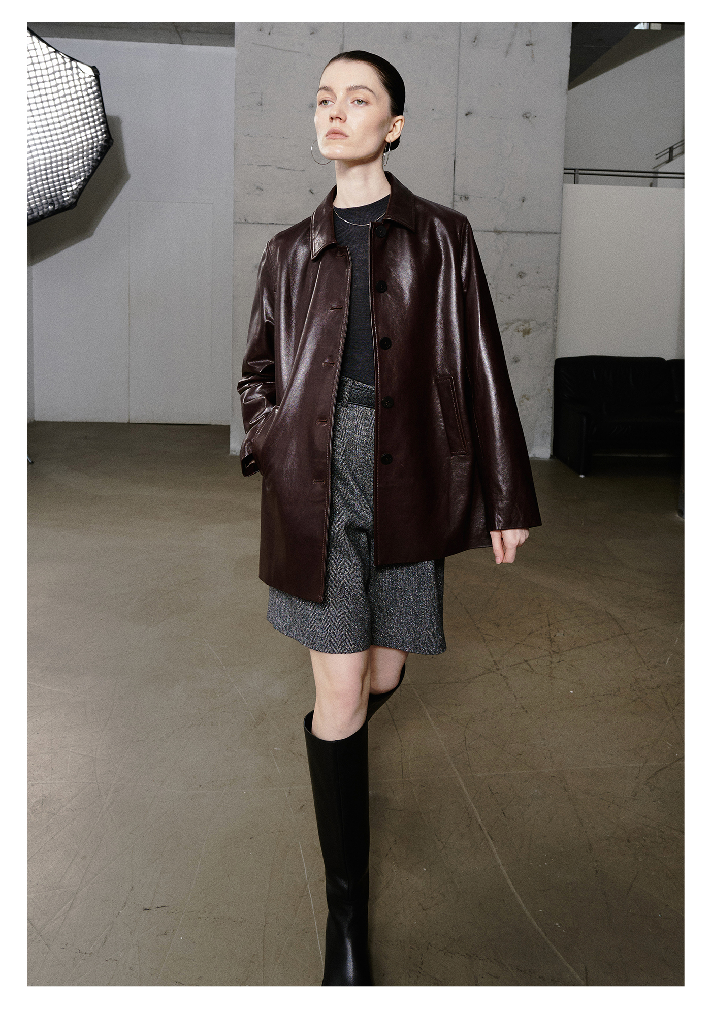 棉仓3661527003-油蜡羊皮翻领皮衣外套女 25秋冬棕色中长款风衣式皮衣