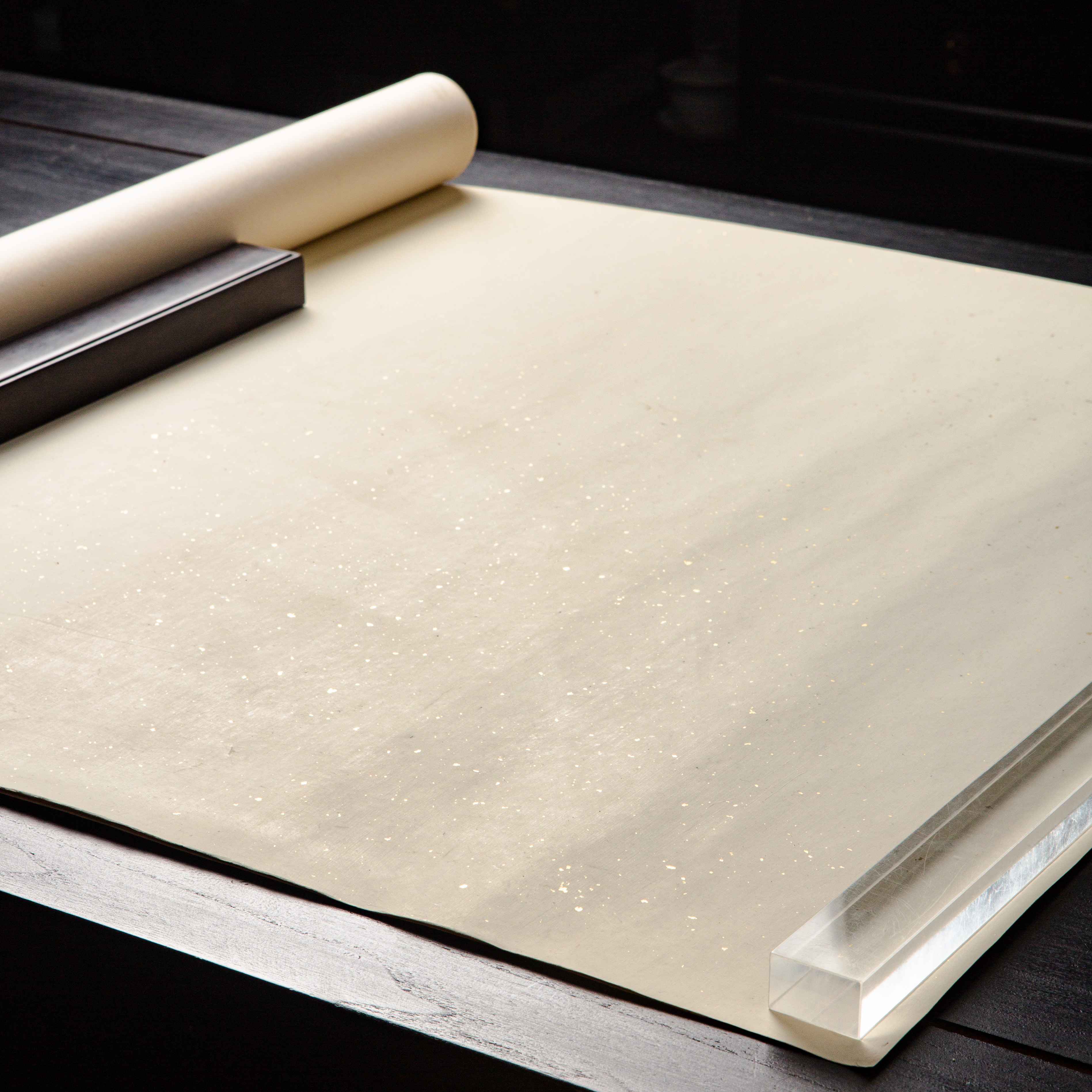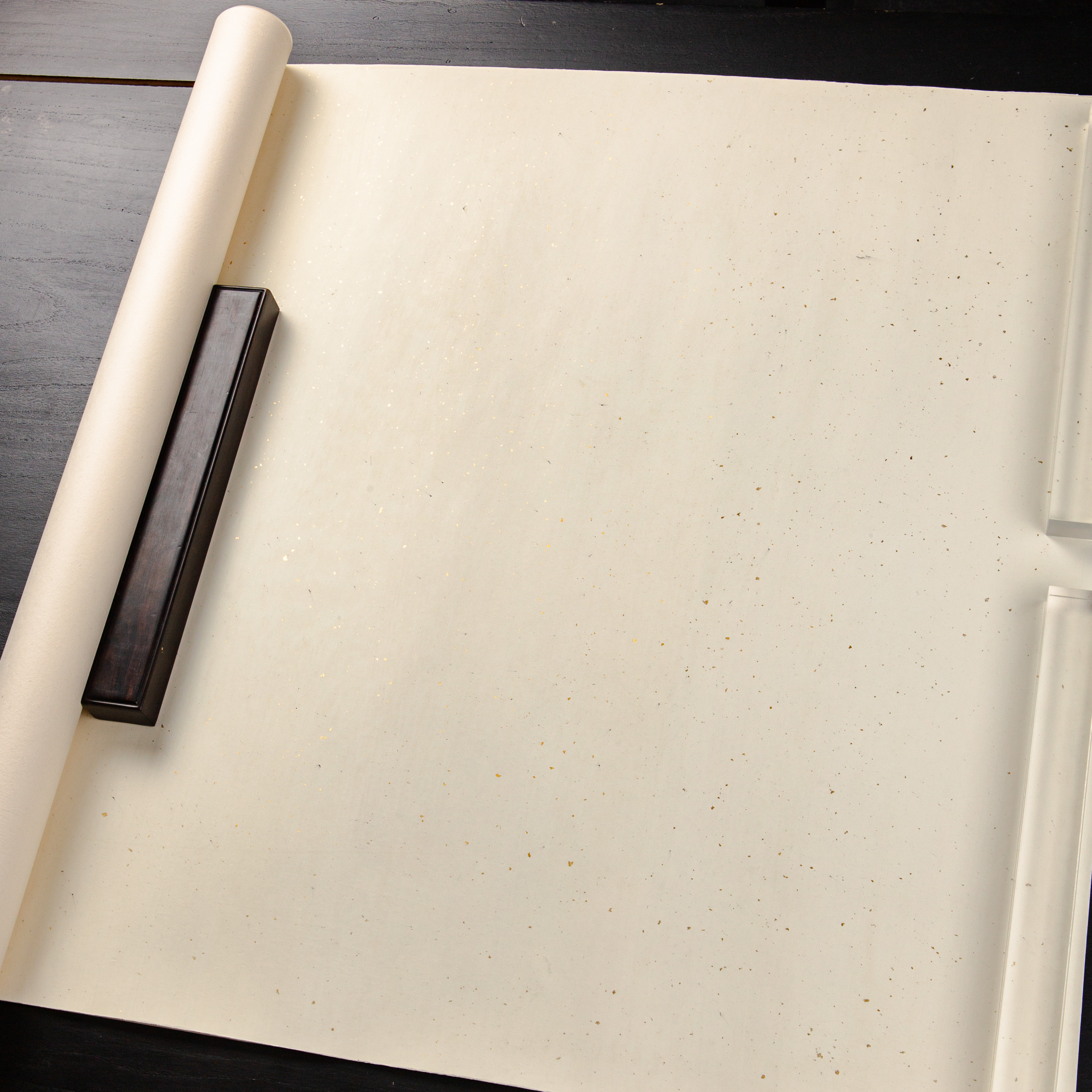 民国四尺真金蜡金纸,一盒五张,带原装老锦盒,极其老旧。此纸洒真金蜡笺工艺,质地厚而细腻,气息古而文雅,是为纸中精品,可遇而不可求。