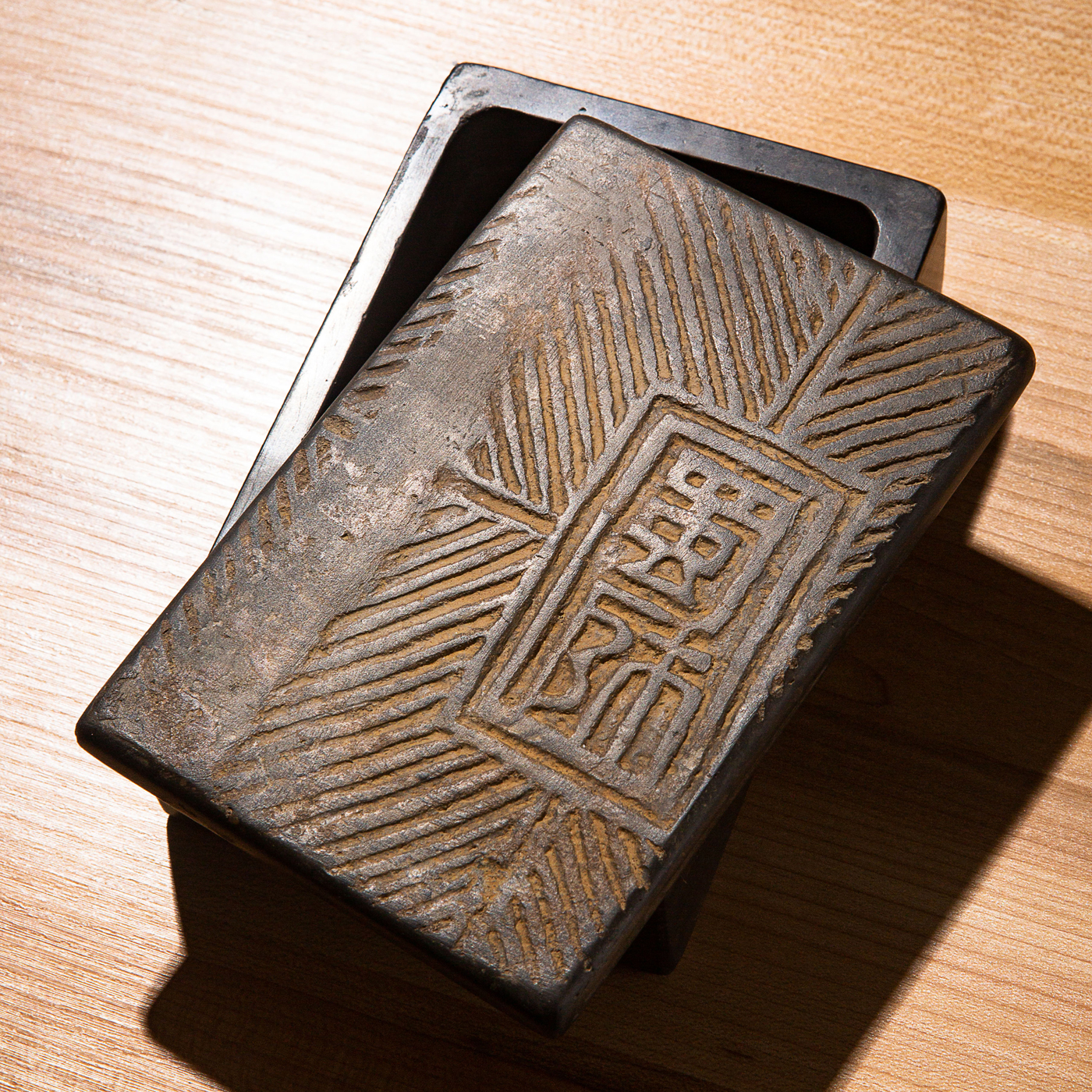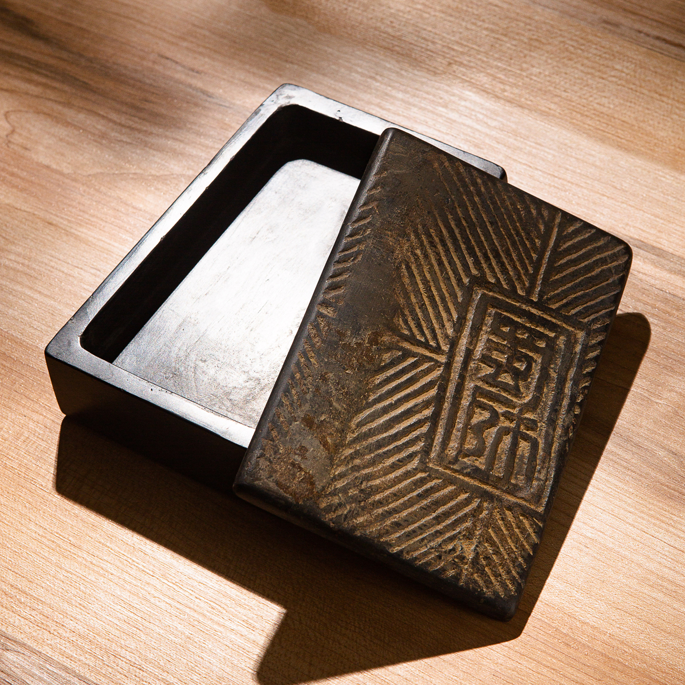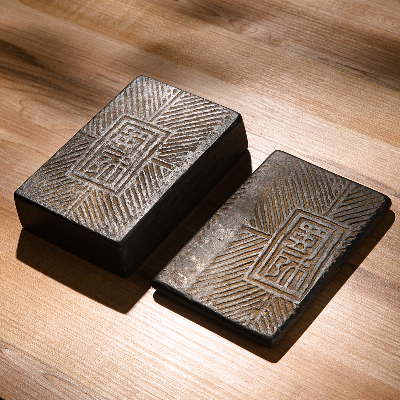 天下第一文人砖(蜀师砖)制砚。蜀师砖是西晋初年古砖,因制造者蜀师而得名。清道光年间体仁阁大学士、太傅阮元,因收藏蜀师砖等八块汉晋铭砖,而起斋号“八砖吟馆”,专门撰文《两浙金石志》考证蜀师砖,并赋诗《八砖吟馆同人分咏八砖之一》,与好友、金石家张廷济为蜀师砖你唱我和。之后,冯登府、六舟、吴让之等文人皆以收藏蜀师砖为幸,著录传世,蜀师砖被称为“天下第一文人砖”。取此砖制砚,实属文人案头之珍品,可遇而不可求。