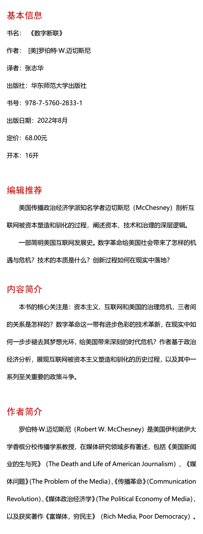 数字断联 批判传播学译丛系列 简明美国互联网发展史 传播政治经济学