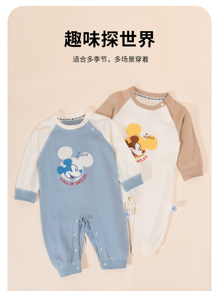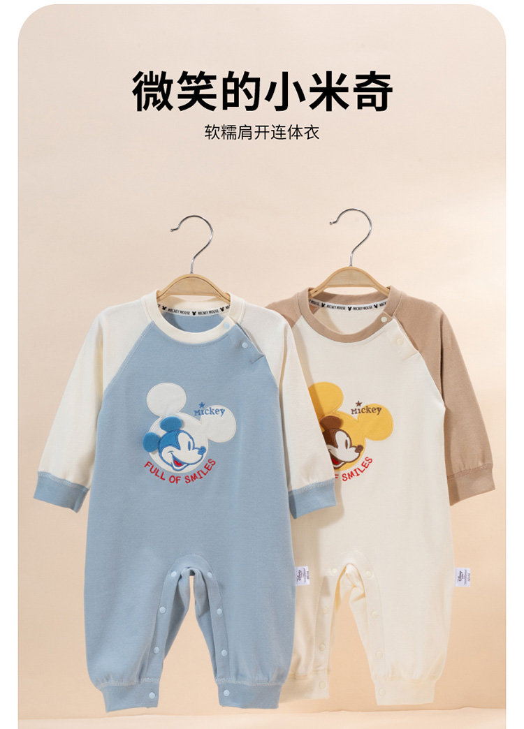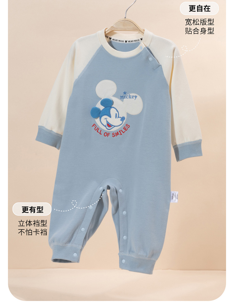 迪士尼童装男童微笑小米奇软糯肩开纯棉舒适连体衣ZD3DL006