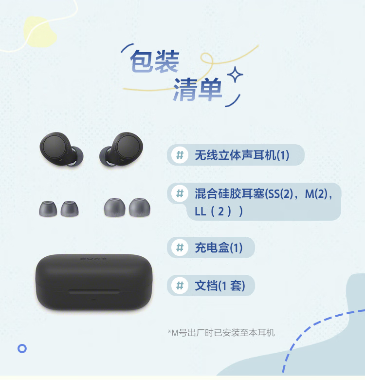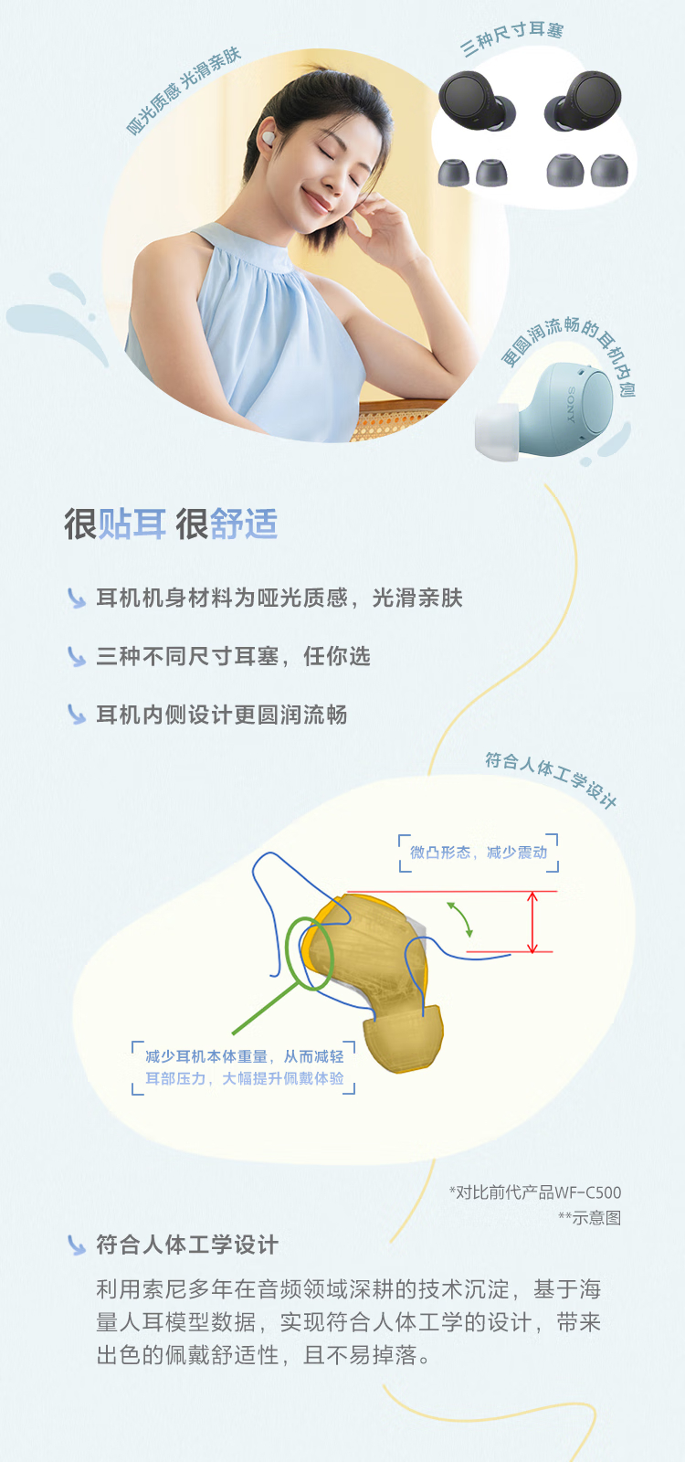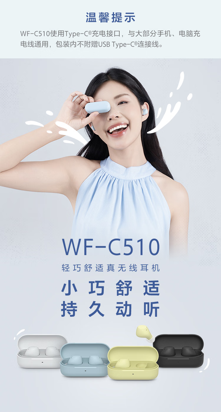 索尼(SONY)WF-C510 黑色 轻巧舒适真无线耳机