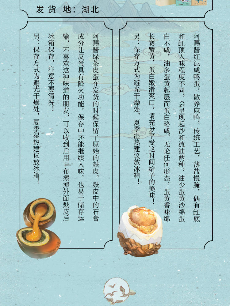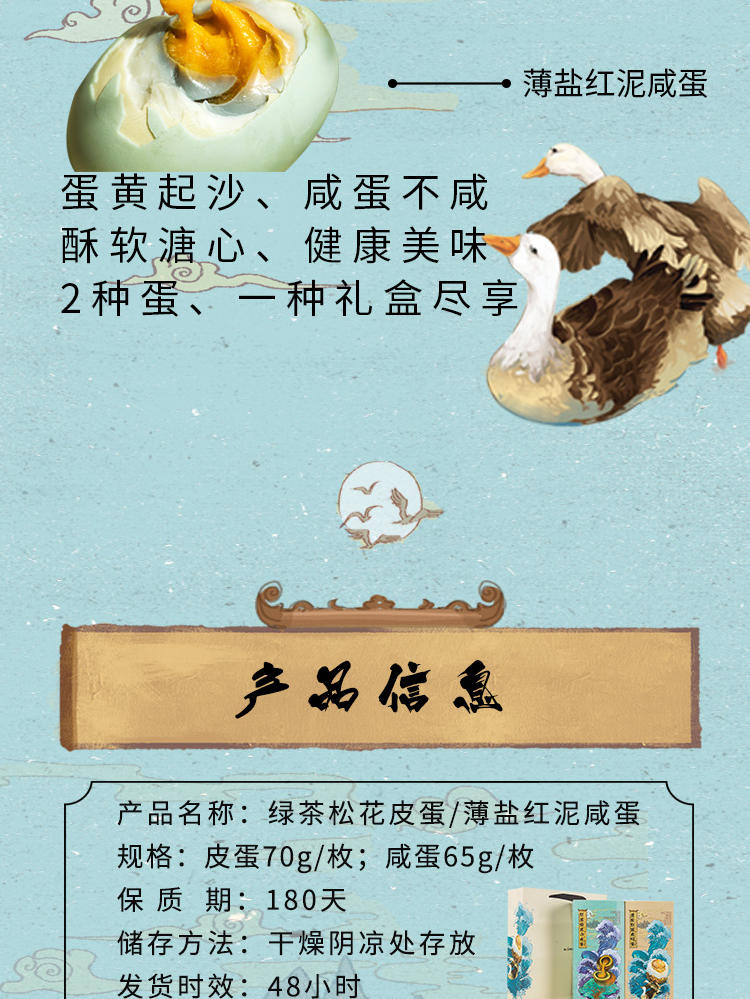 【 产品名称】:双蛋(绿茶松花皮蛋、薄盐红泥咸鸭蛋)