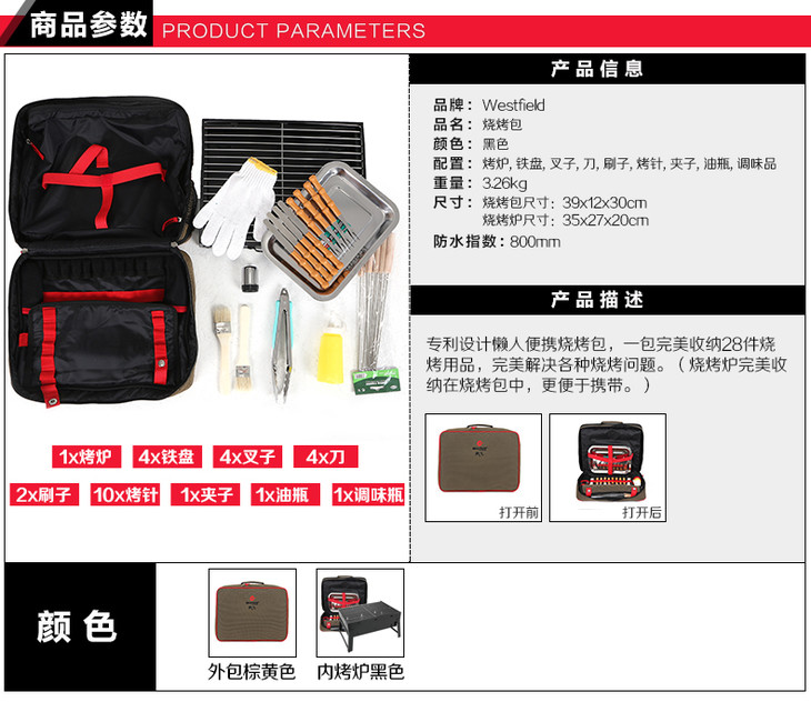 (永久下架)Westfield户外便携烧烤架全套工具包/易收纳家用烧烤炉套装