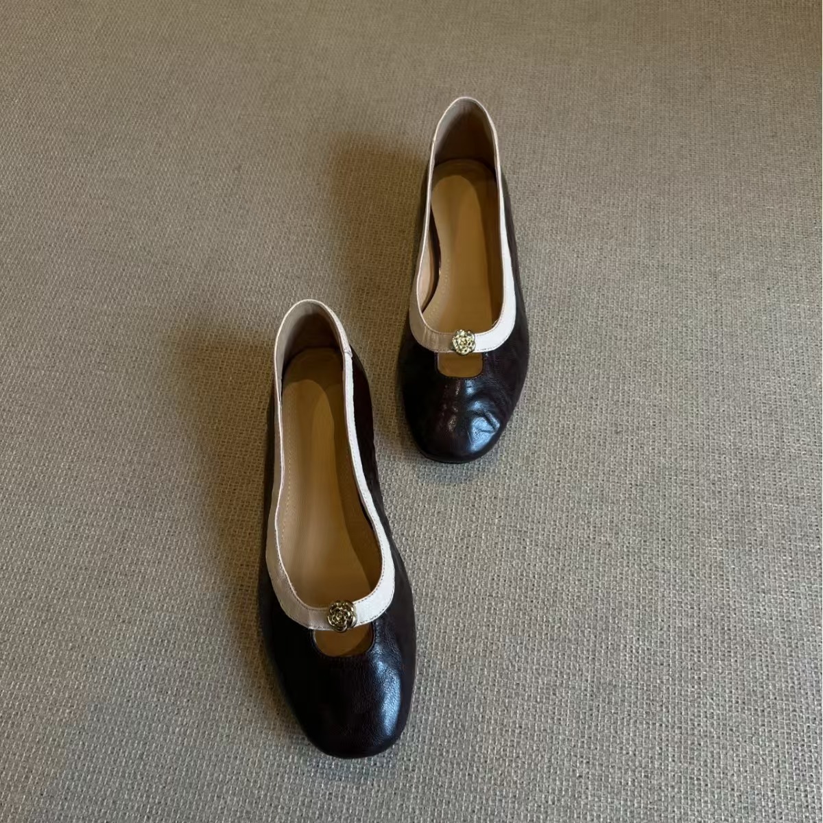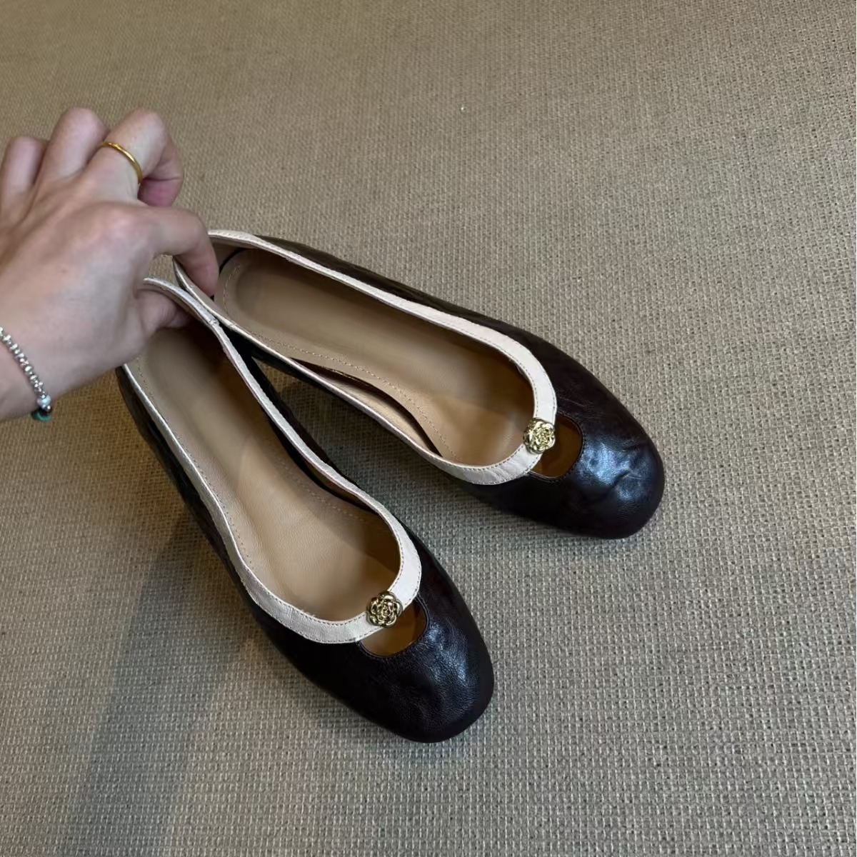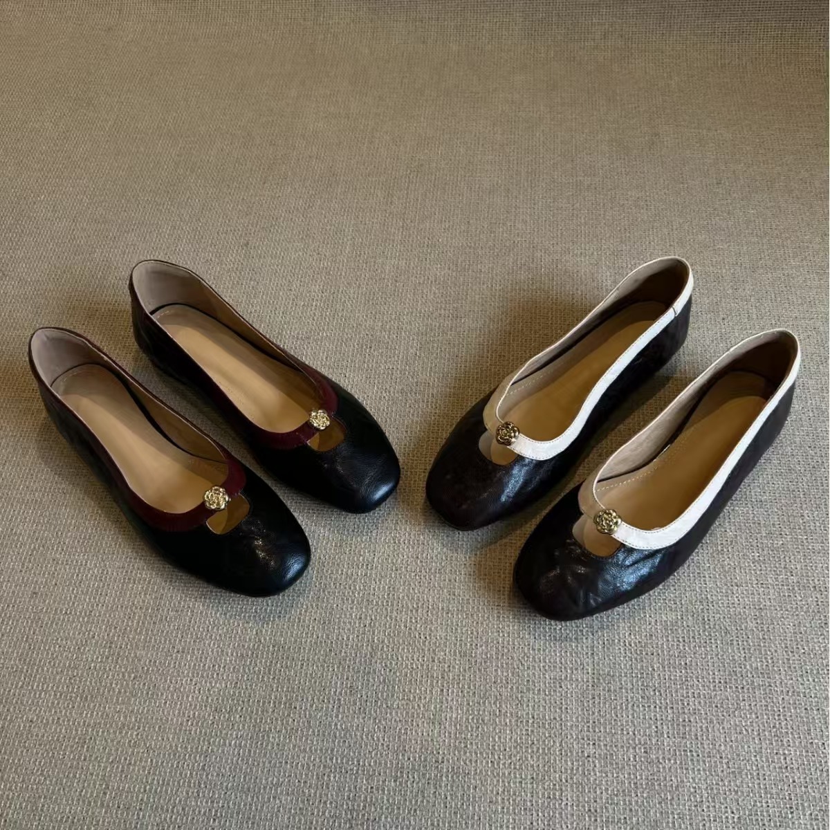 复古小羊皮(内衬含有羊皮)平底鞋--山茶花平底鞋