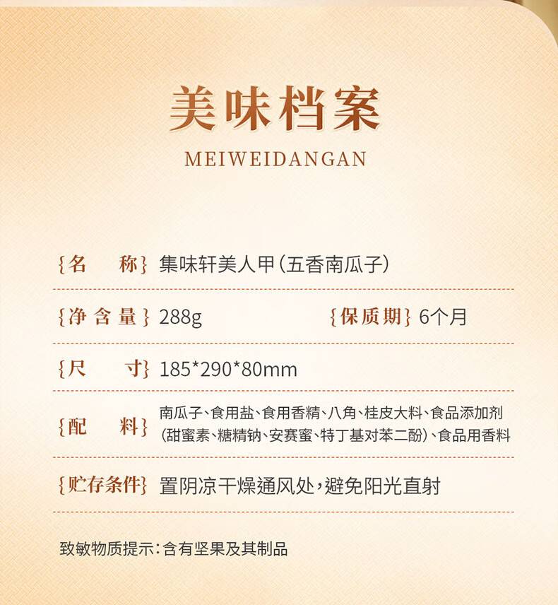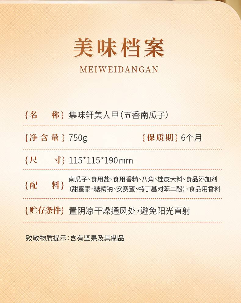 【评测好物】(集味轩)美人甲五香南瓜子750g【单罐装】(jz-5901)