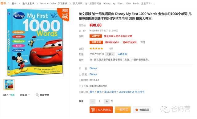 【3岁+】英文原版《迪士尼儿童图解词典》!美亚2016年年度畅销书!《my first 1000 words》原735元!仅1.8折!爆仓7天发货