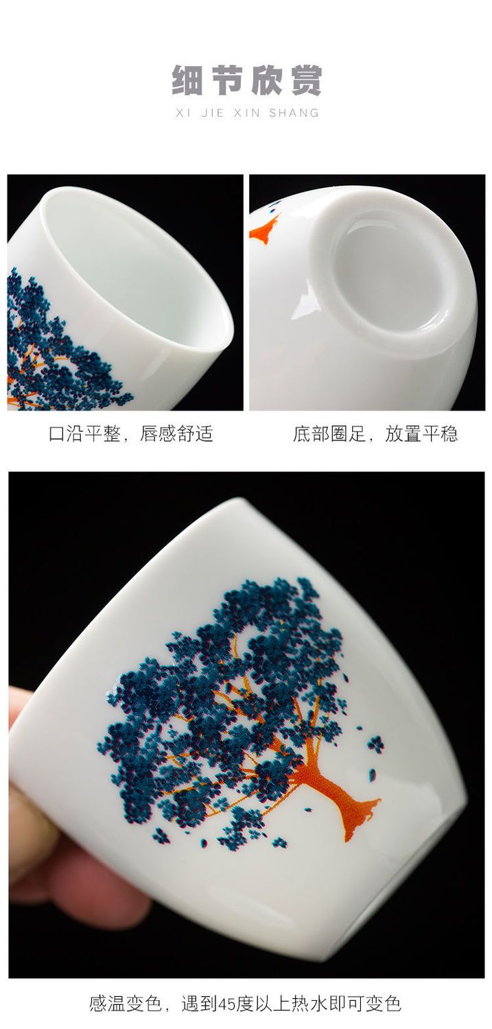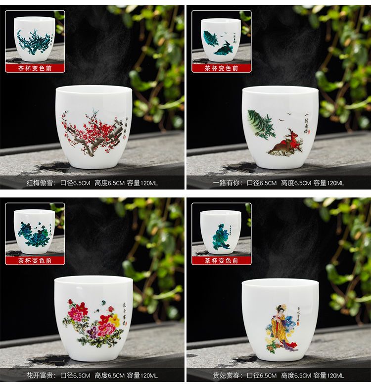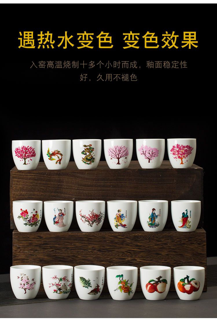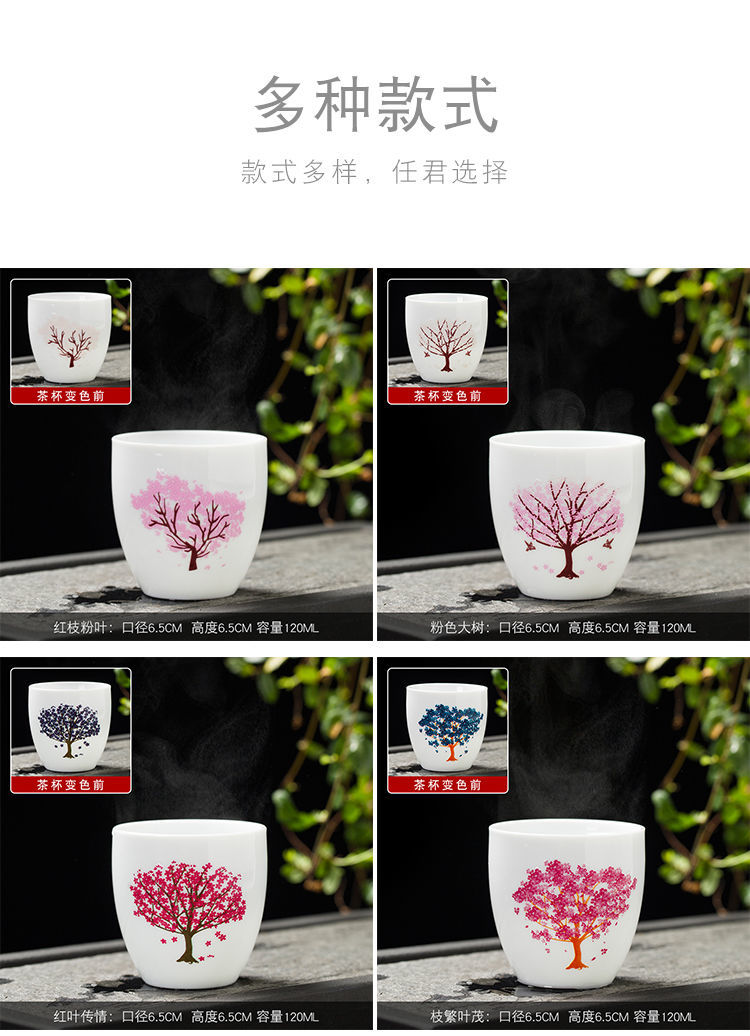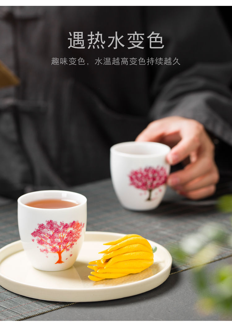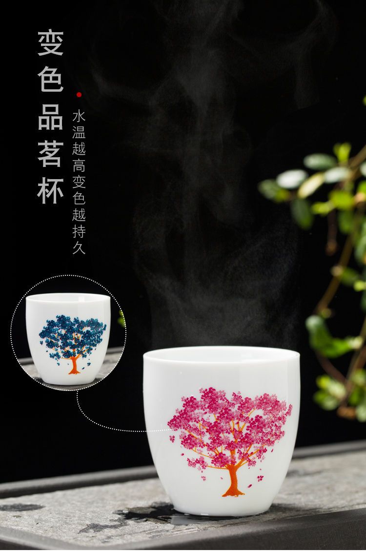 陶瓷冷热变色茶杯白瓷樱花杯主人杯单杯功夫茶具茶杯个人杯品茗杯