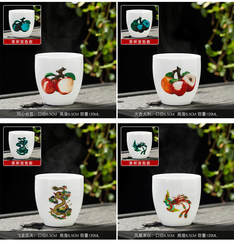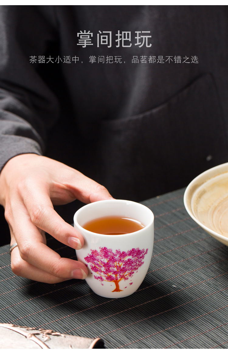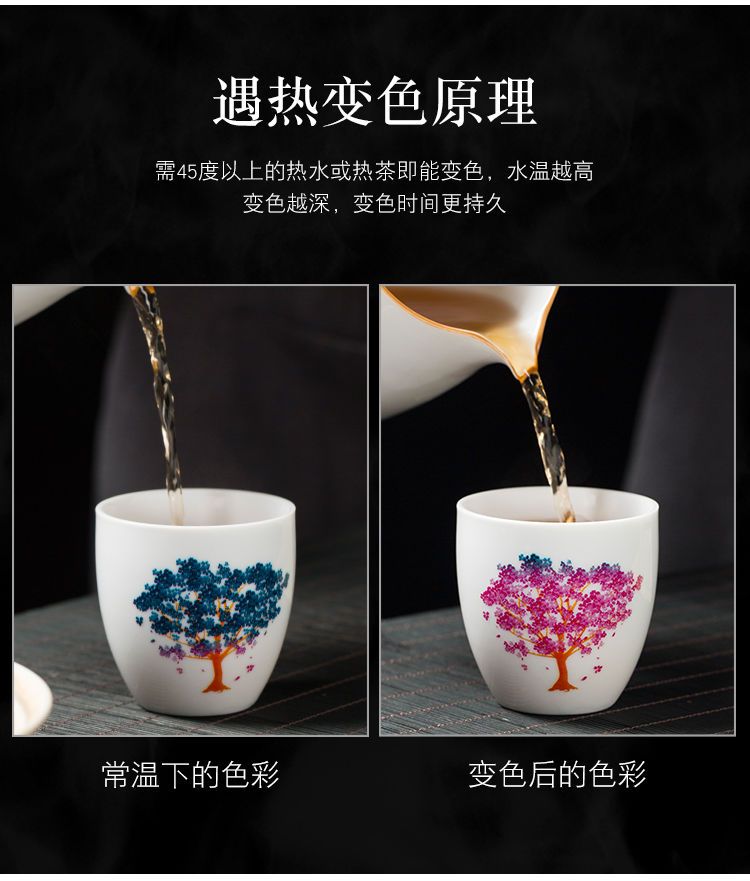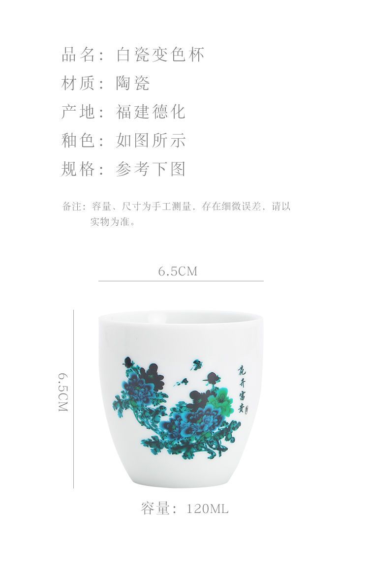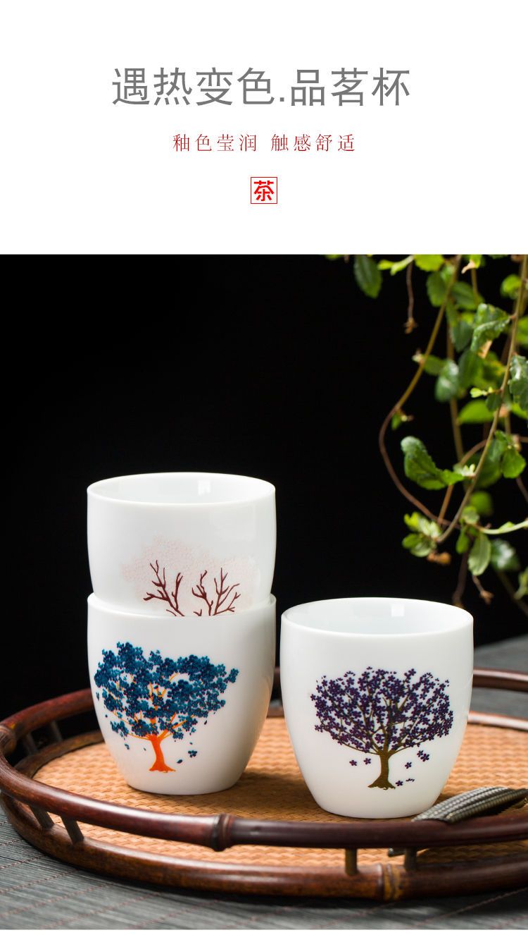 陶瓷冷热变色茶杯白瓷樱花杯主人杯单杯功夫茶具茶杯个人杯品茗杯