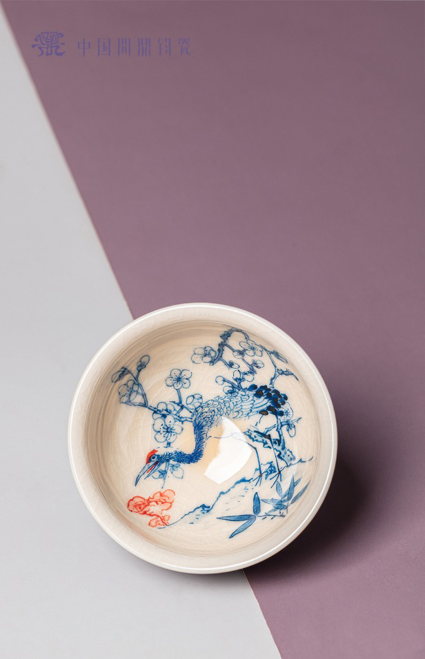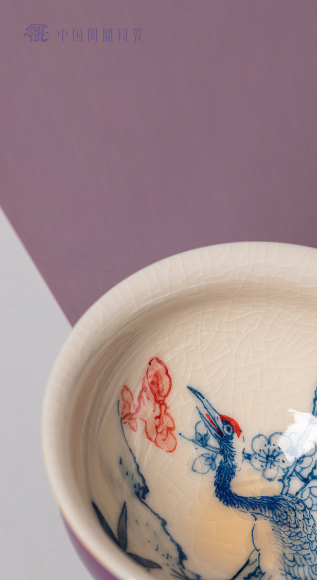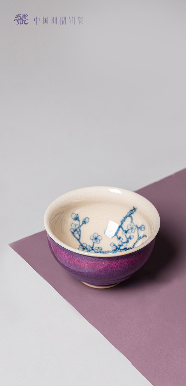 问鼎钧瓷鹅黄青花闲意杯(梅花鹤语)