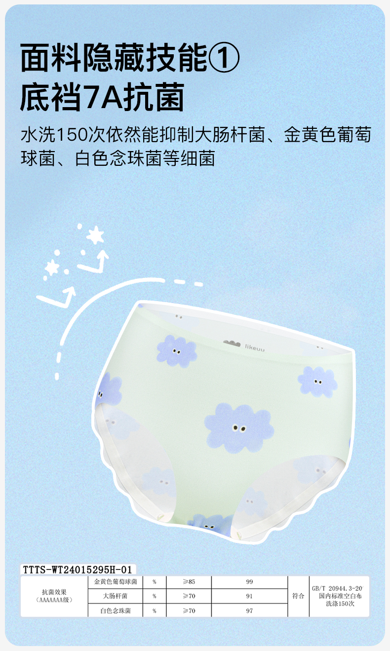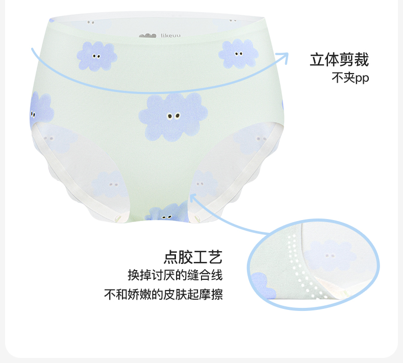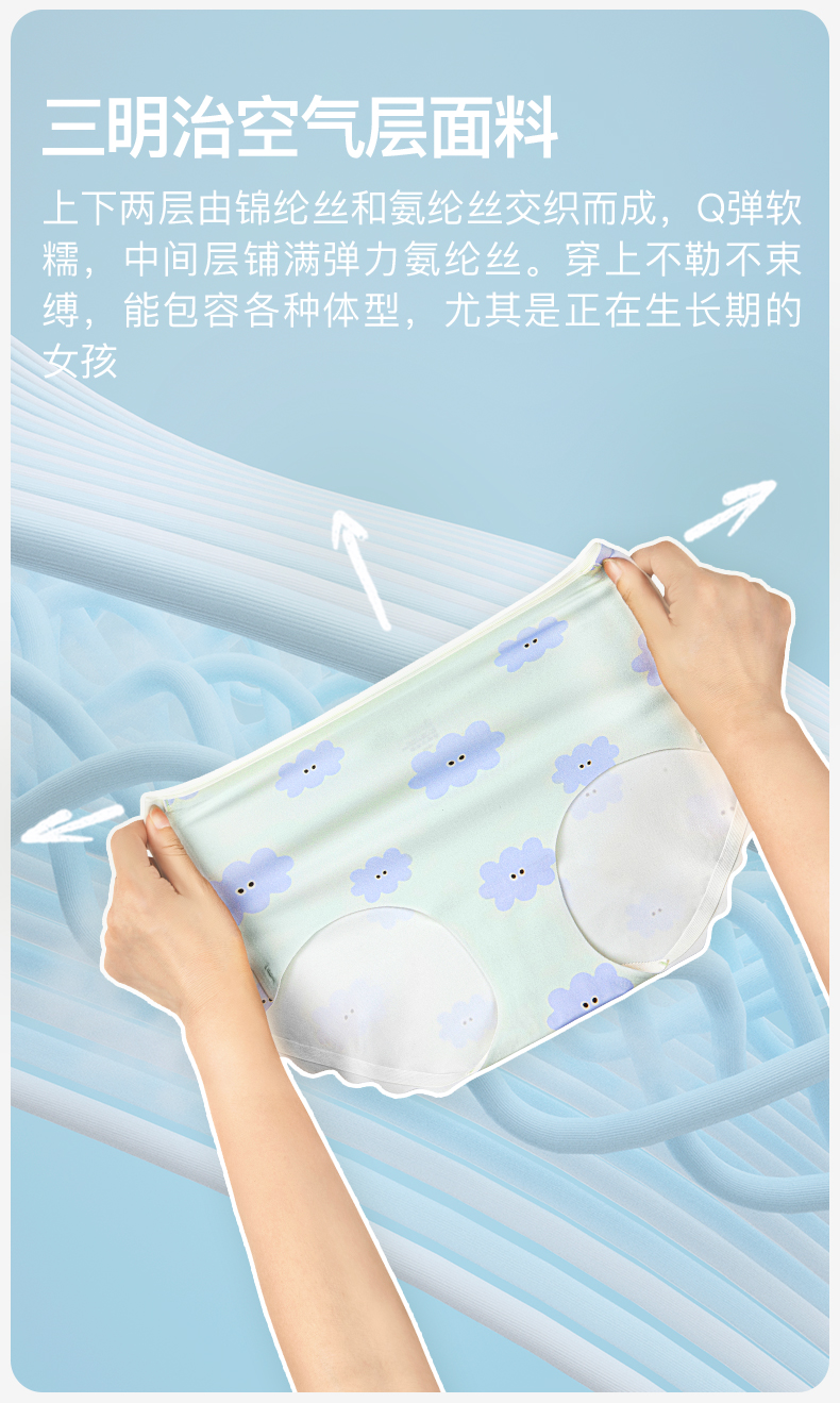 (11.11)ubras旗下likeuu少女无尺码小小浪花内裤女童青春发育期内裤3条装