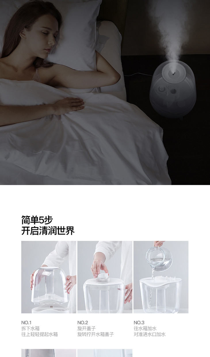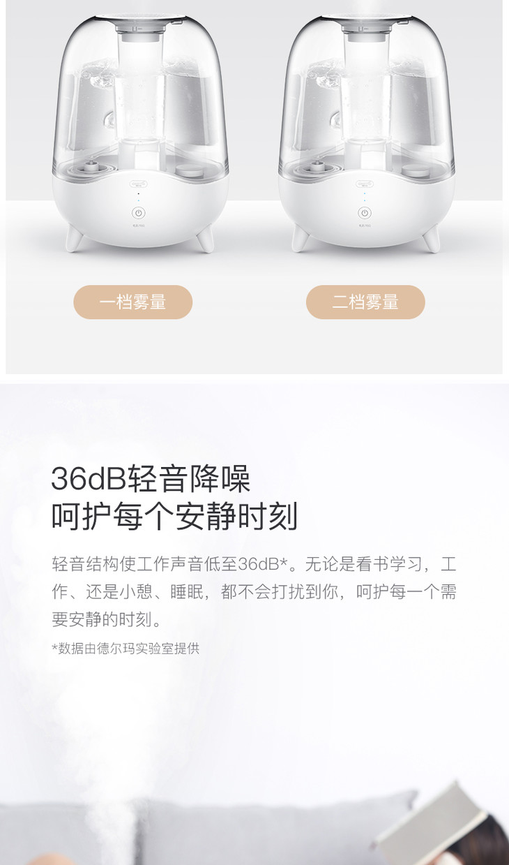 德尔玛DEERMA 5L大容量晶润加湿器F325