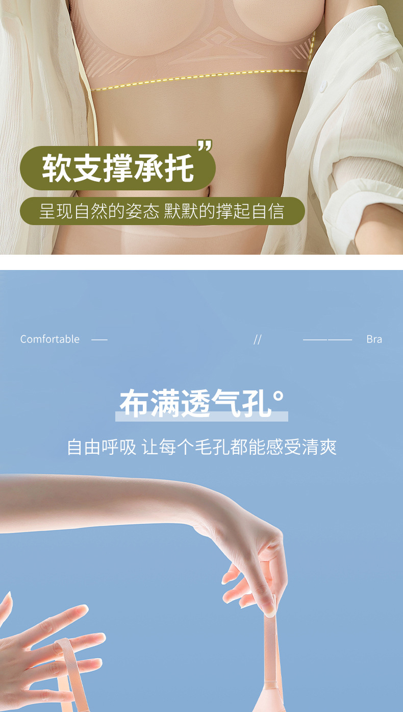 【0感超薄❗️冰丝聚拢美背内衣】超多透气孔,果冻胶条软支撑承托防下垂!速干轻薄软支撑无痕收副乳小胸聚拢无钢圈文胸罩
