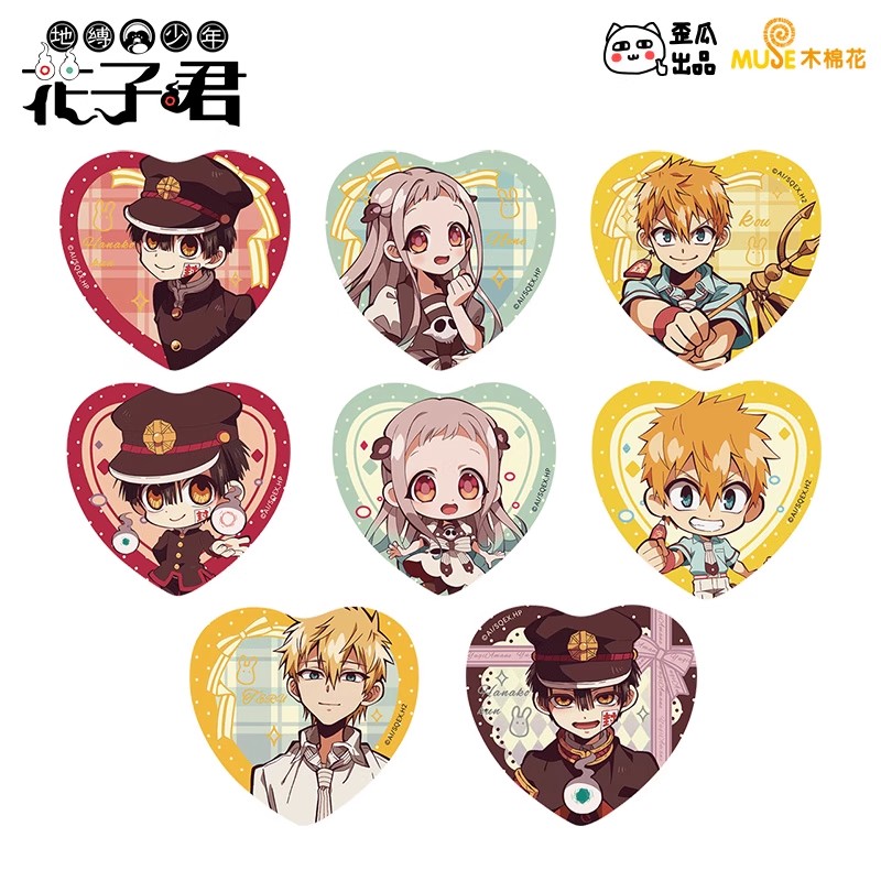 歪瓜 地缚少年花子君 心形马口铁徽章 吧唧 全8种 7包/盒 国谷