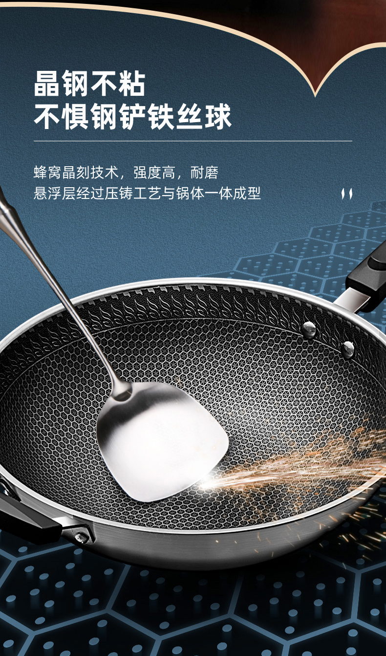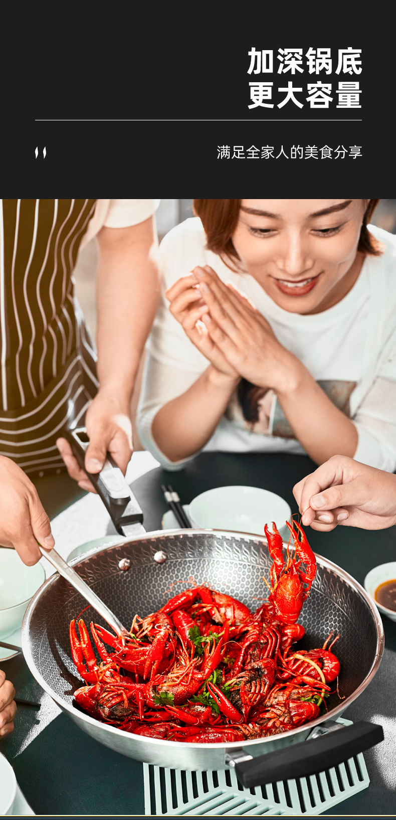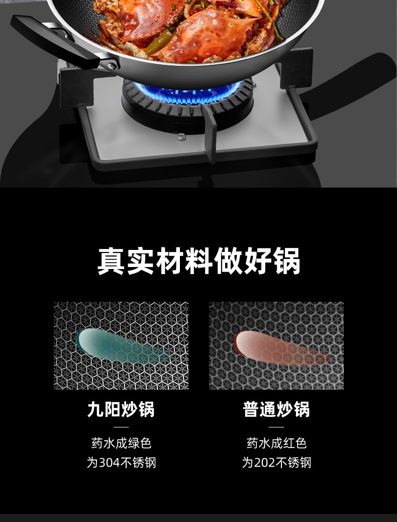 【明火专用】Joyoung/九阳CJ908/918晶钢不粘锅304不锈钢炒锅