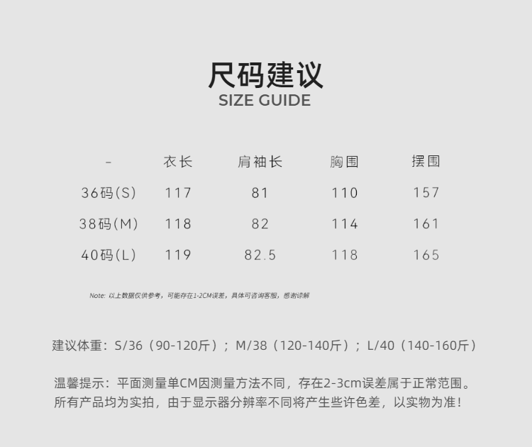 | 售后标准 | 1.衣服无穿洗的情况下支持7天无理由 2.签收前请确认包装外观有无破损,有破损、内件损坏当场拒收,收到后如有质量问题24小时之内带面单+产品照片联系客服进行赔付或者换货,超时不予处理望谅解~ 3.售后政策(如有质量问题承担退回运费,明细请务必写明,否则后期费用自行承担) 4.无理由拦截,拒收扣除发货运费10元 尺码建议仅供参考,因个人原因导致尺码大小的退换货,售后运费自理。 关于色差:因显示器,拍摄光线,角度不同存在些许色差,请以收到的实物为准,色差情况属正常情况;服饰类存在轻微线头,属于正常现象不在售后范围内,深色衣物首洗可能略有浮色属正常现象,不在售后范围内 |