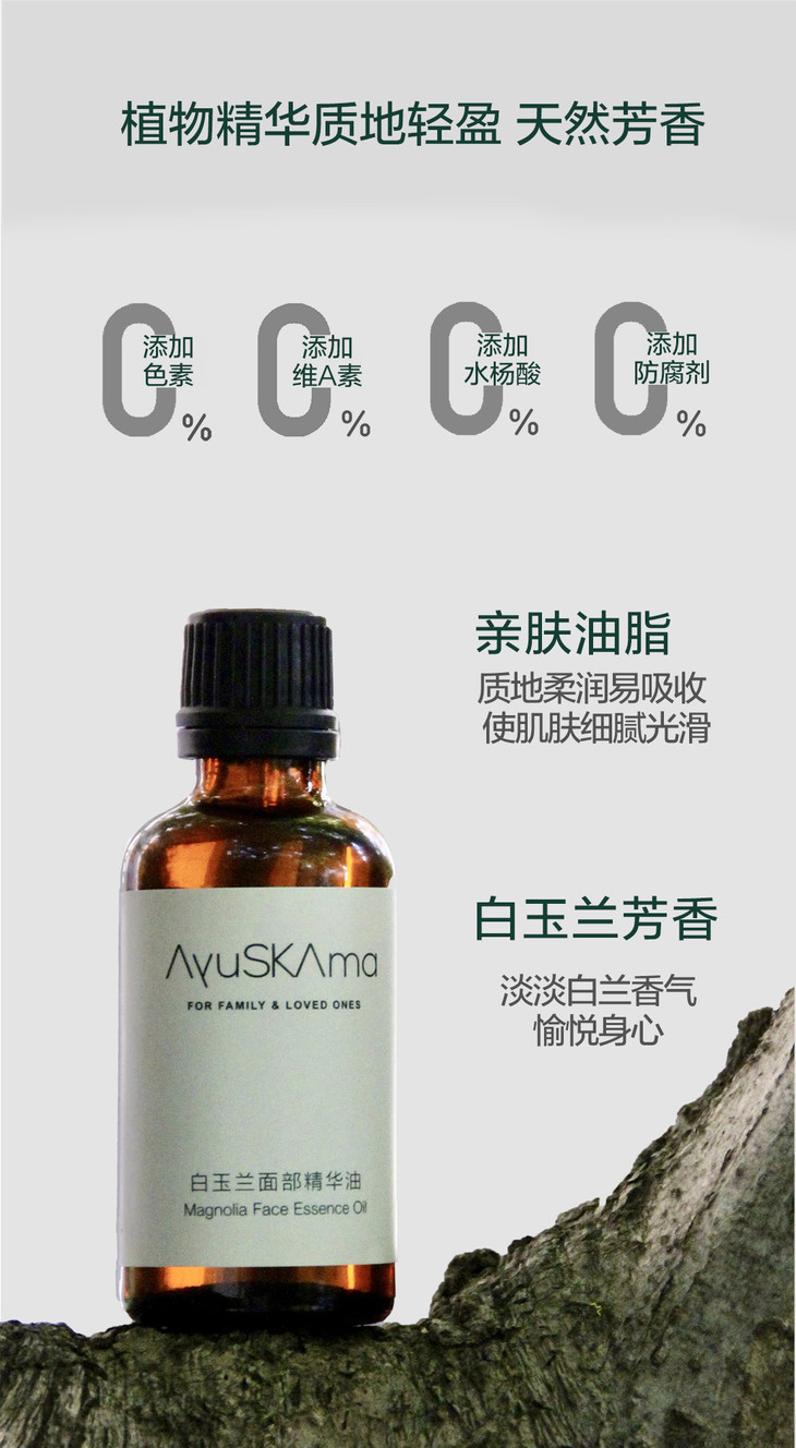 使用方法:清洁面部肌肤,充分补水后,取适量白玉兰面部精华油涂抹在面部肌肤上,轻轻按压至吸收即可,无需清洗。