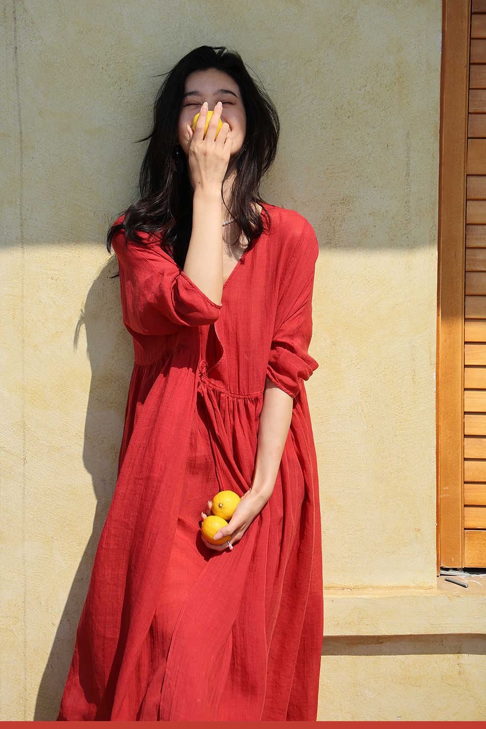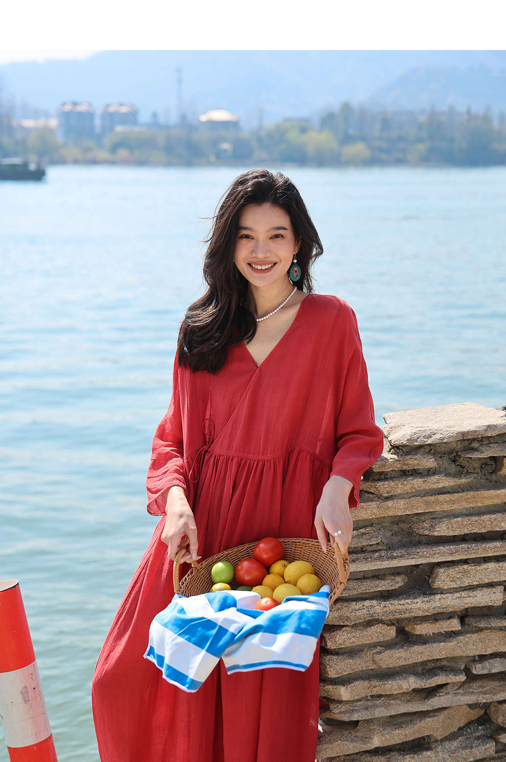绽放旅行女装277朵/天丝苎麻两穿开衫连衣裙文艺百搭轻薄防晒舒适